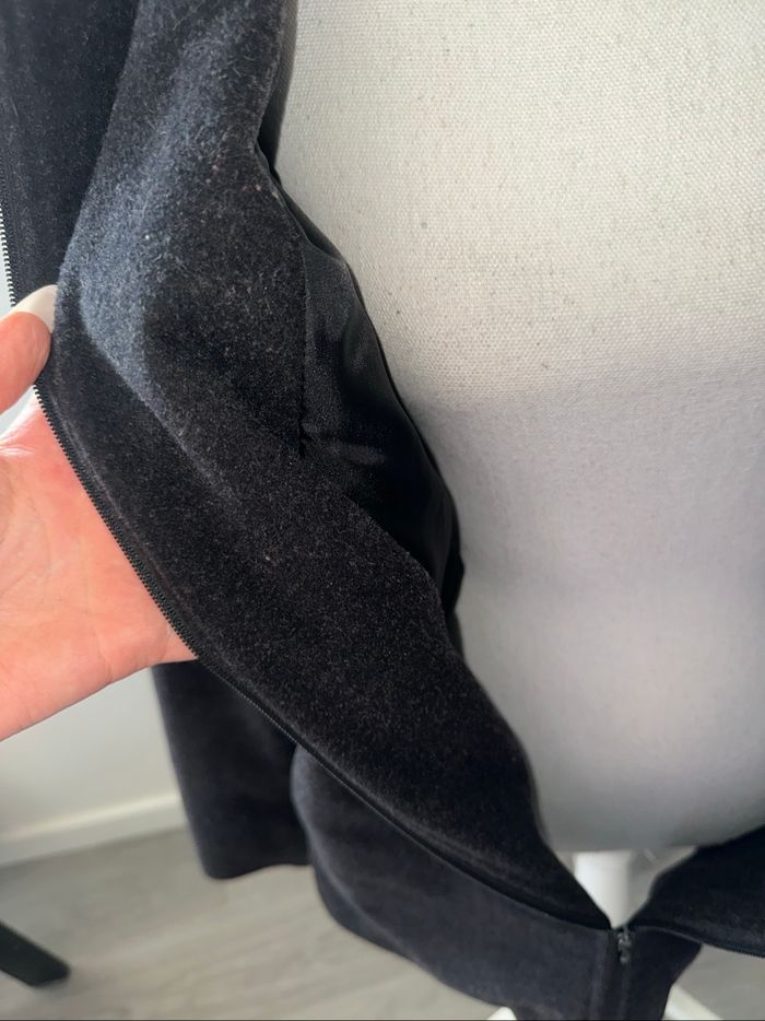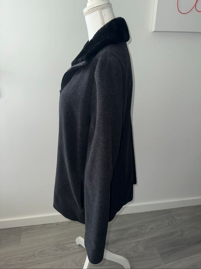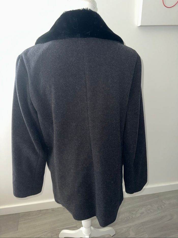 Manteau en laine et fausse fourrure gris et noir Vintage T44 XXL - photo numéro 5