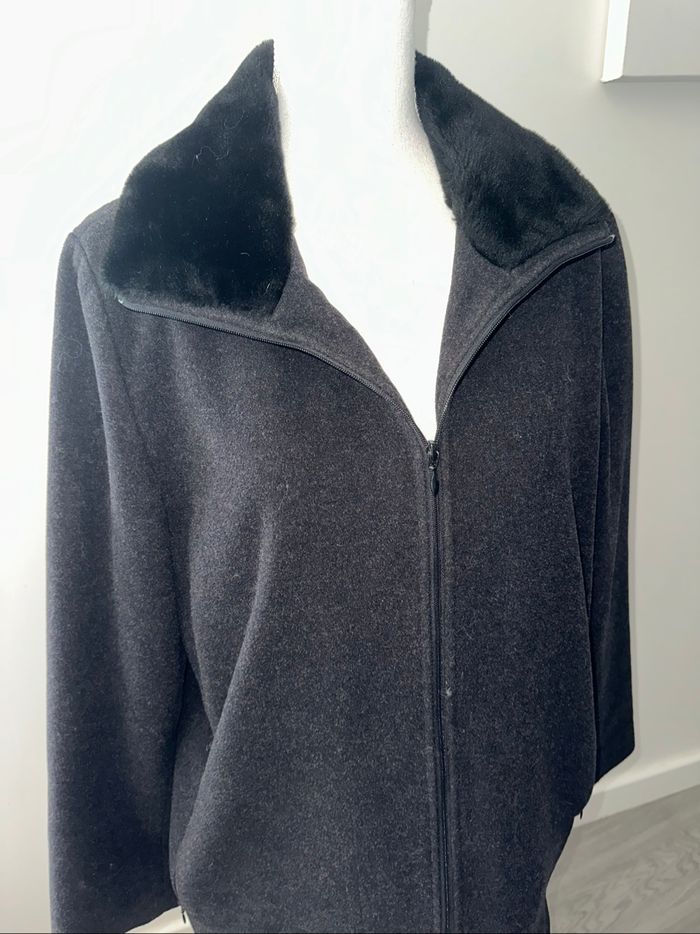 Manteau en laine et fausse fourrure gris et noir Vintage T44 XXL - photo numéro 1