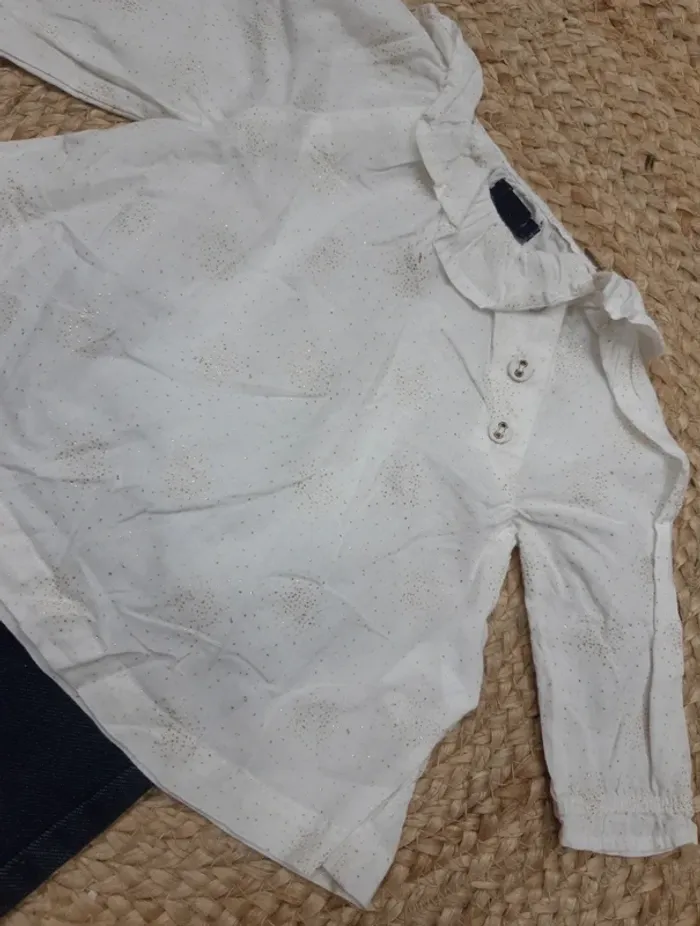 Blouse blanche manches longues pailleté doré Pantalon tregging Kiabi 3 mois #anthonyagnes_bebe3M