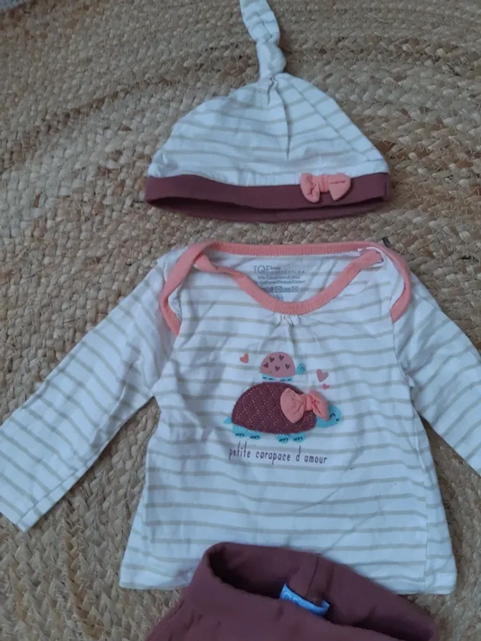 Tenue haut manches longues, pantalon et bonnet TQF 3 mois - photo numéro 1