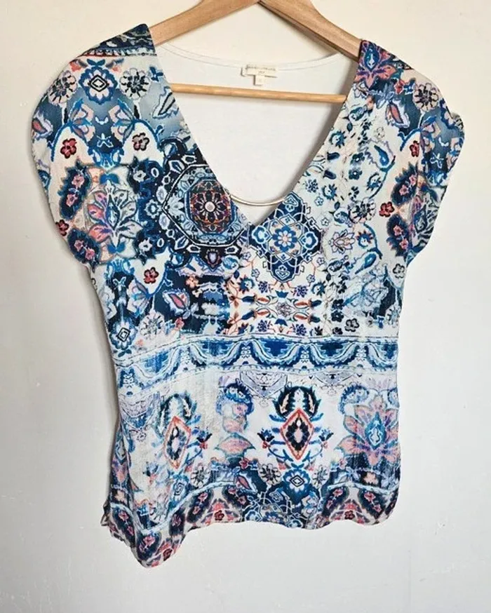 📌Lot 20% de remise dès 5 articles T-shirt bleu et uni blanc dans le dos, à motif ➡️Largeur à plat sous les bras 46 cm ➡️ Longueur 60 cm ➡️100% polyester ⭐Excellent état ✈Envoi rapide des colis 💗 Abonnez vous à mon profil, nombreux articles ajoutés régulièrement ! #laetitresors_tshirt36 #laetitresors #tshirt #grain #malice #bleu #blanc #col #v #manche #courte #marine #motif