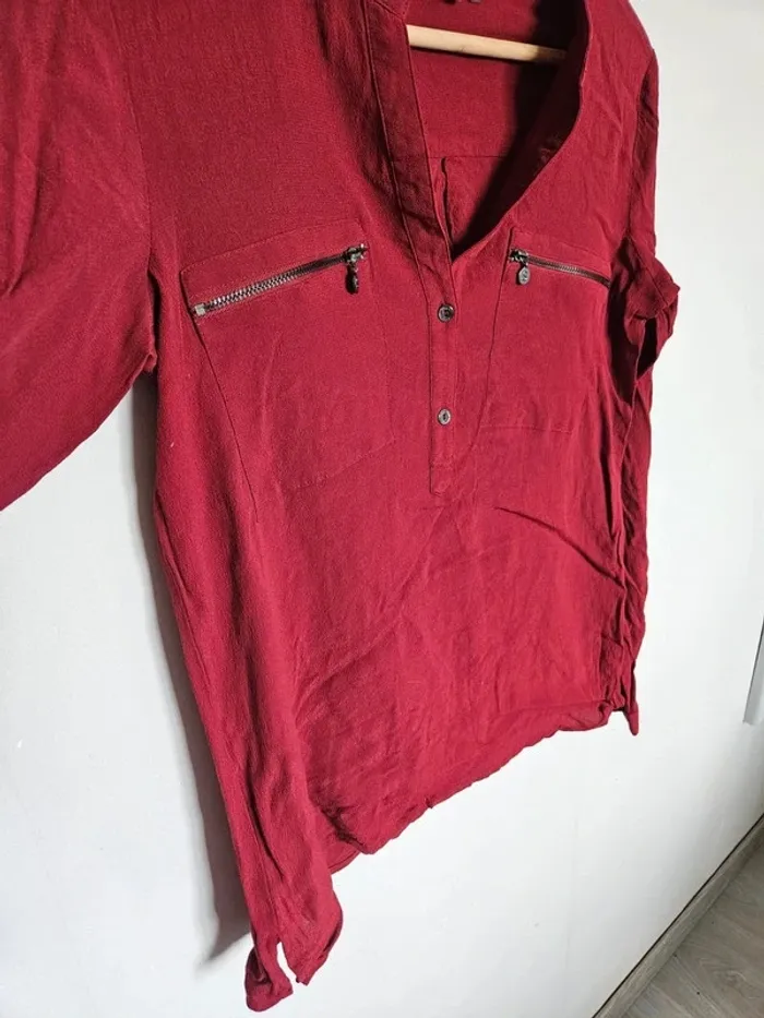 📌Lot 20% de remise dès 5 articles Blouse bordeaux, manche longue, 2 fausses poches sur le devant ➡️Largeur à plat sous les bras48 cm ➡️ Longueur 66 cm ➡️100% polyester ⭐Excellent état ✈Envoi rapide des colis 💗 Abonnez vous à mon profil, nombreux articles ajoutés régulièrement ! #laetitresors_blouse38 #laetitresors #blouse #rouge #salsa #manche #longue #uni #fermeture #éclair #zip #doré #chemisier #chemise #bordeaux