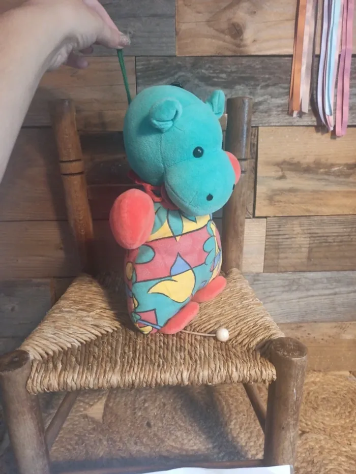 Peluche hippopotame vintage boîte à musique tbe - photo numéro 2