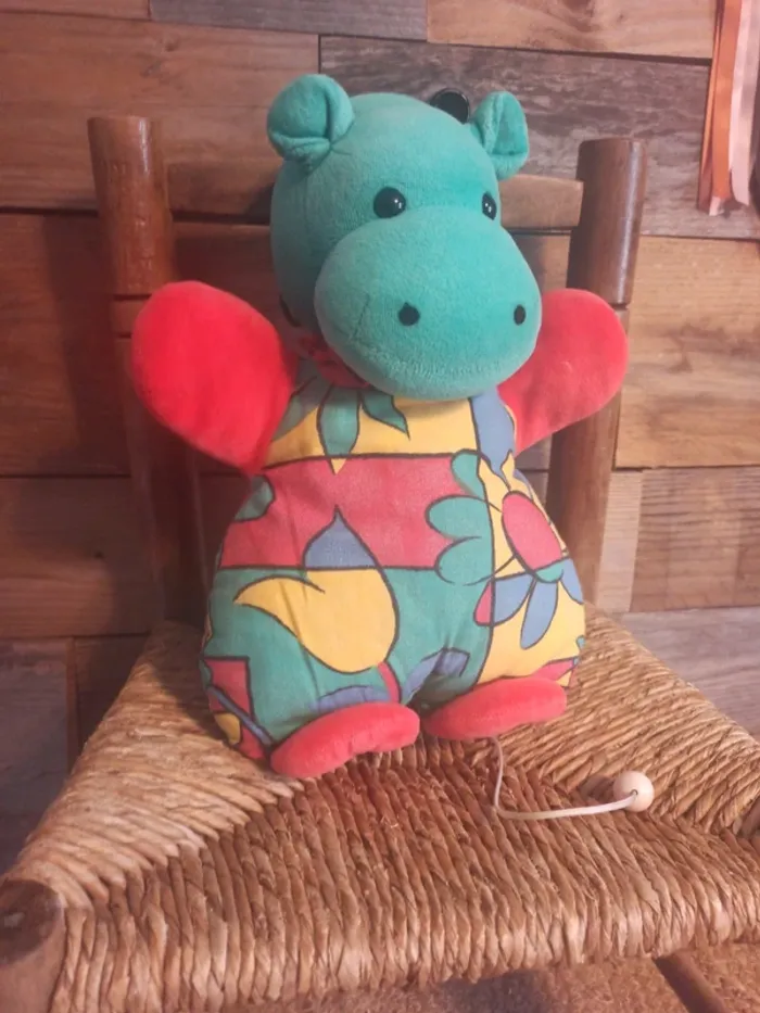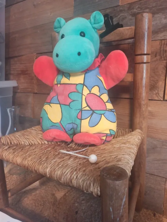 Peluche hippopotame vintage boîte à musique tbe - photo numéro 1