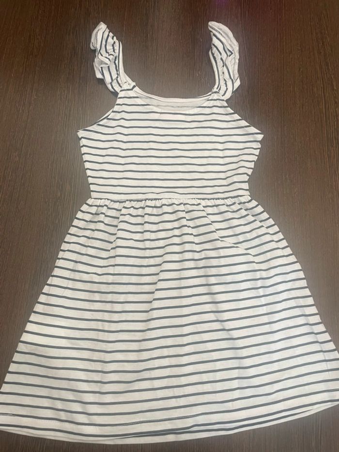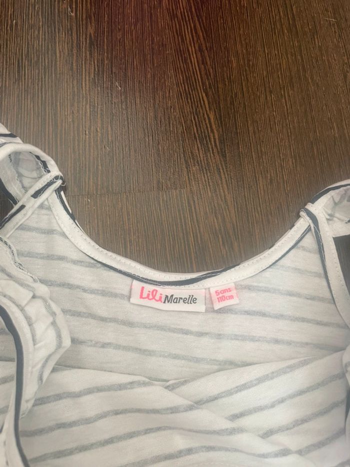Robe légère d’été à fines bretelles, taille 5 ans, de la marque Lili Marelle. Blanche à rayures bleues. Jamais portée, neuve sans étiquette