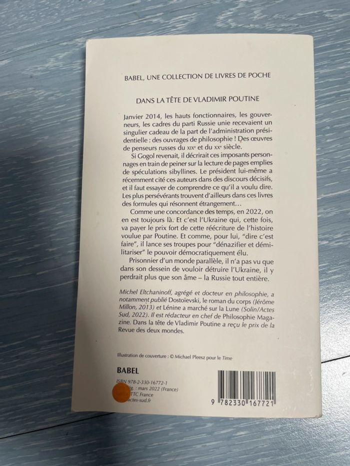 Dans la tête de Vladimir Poutine de Michel Eltchaninoff A noter: une corne sur la 4eme de couverture (photo 4)