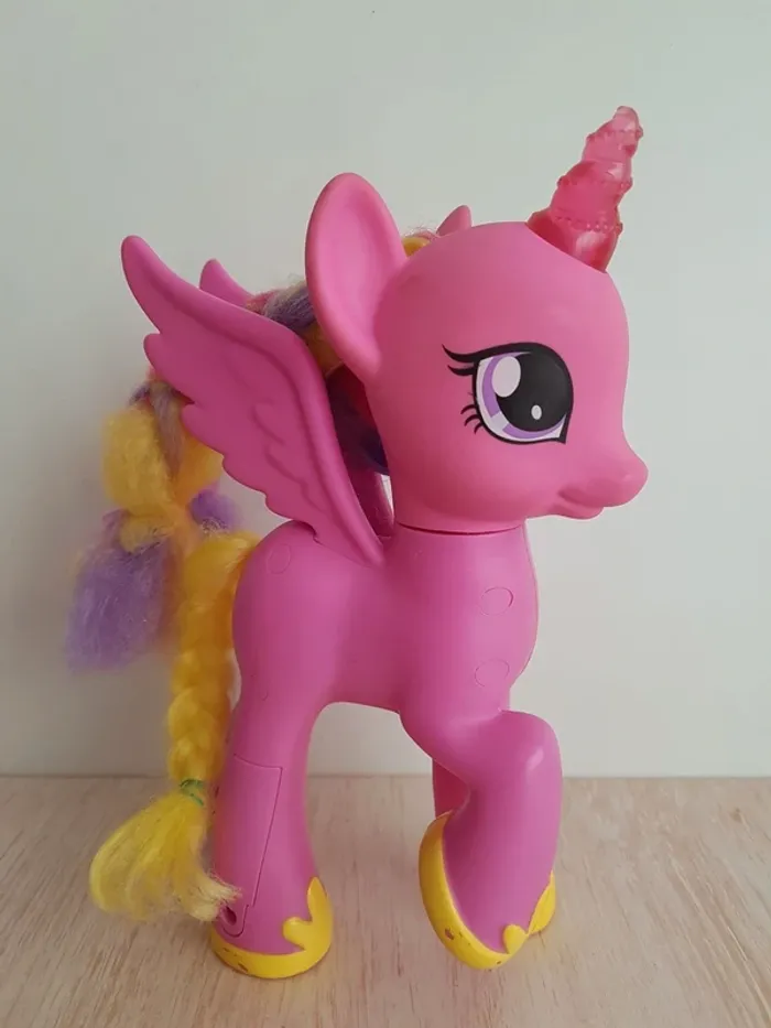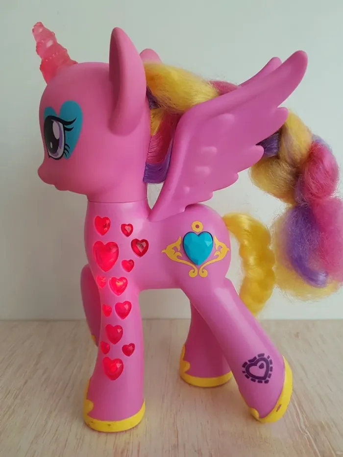 • Princesse Cadance, poney interactif sonore et lumineux avec chant, différentes phrases en français grâce au bouton cœur, crinière usée, My little pony, Hasbro