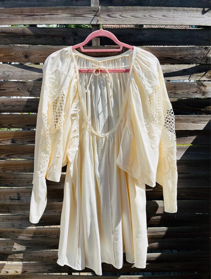 Robe crème à manches bouffantes Haut du dos découvert avec noeud H&M / TAILLE L / TRÈS BON ÉTAT (portée 1x) Achetée 35.99€ en magasin.