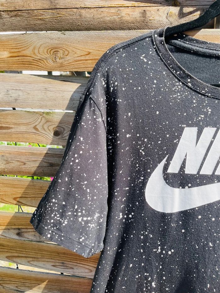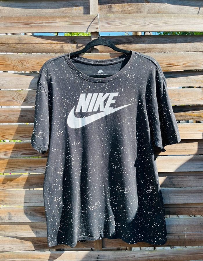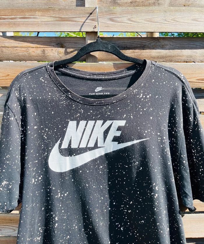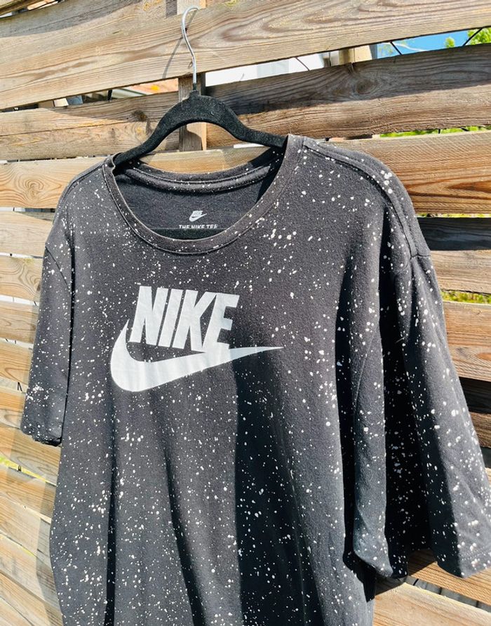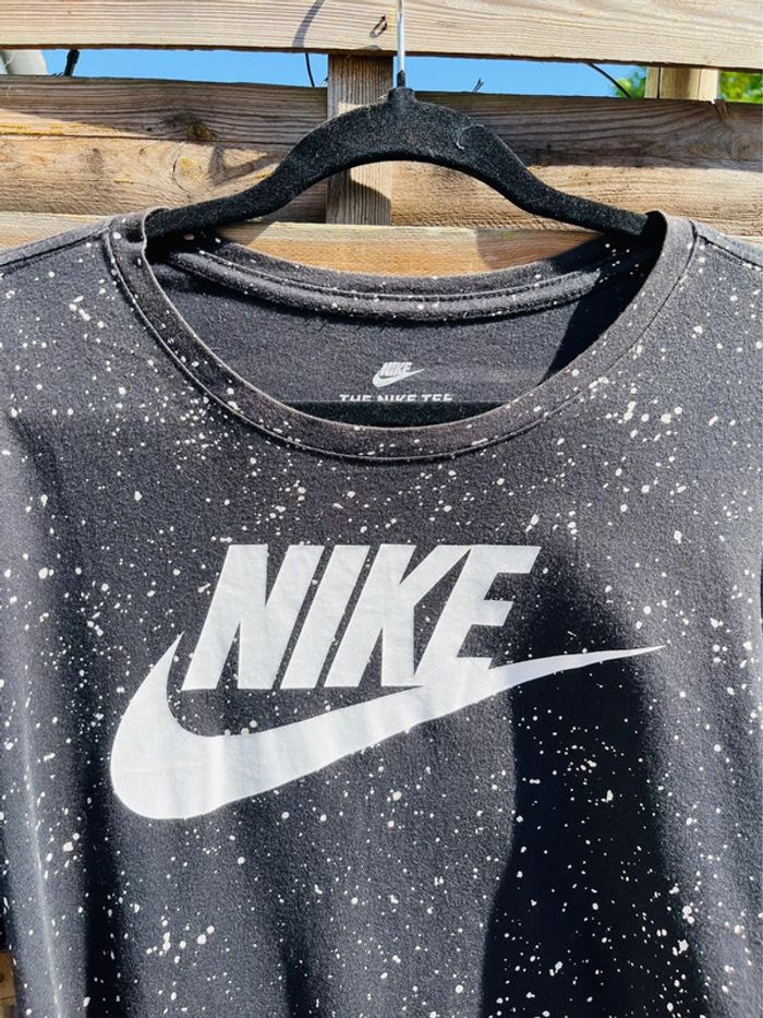 T-shirt Nike noir avec logo blanc Effets taches de peinture blanche NIKE / TAILLE L / TRES BON ÉTAT Acheté 24.99€ en magasin.