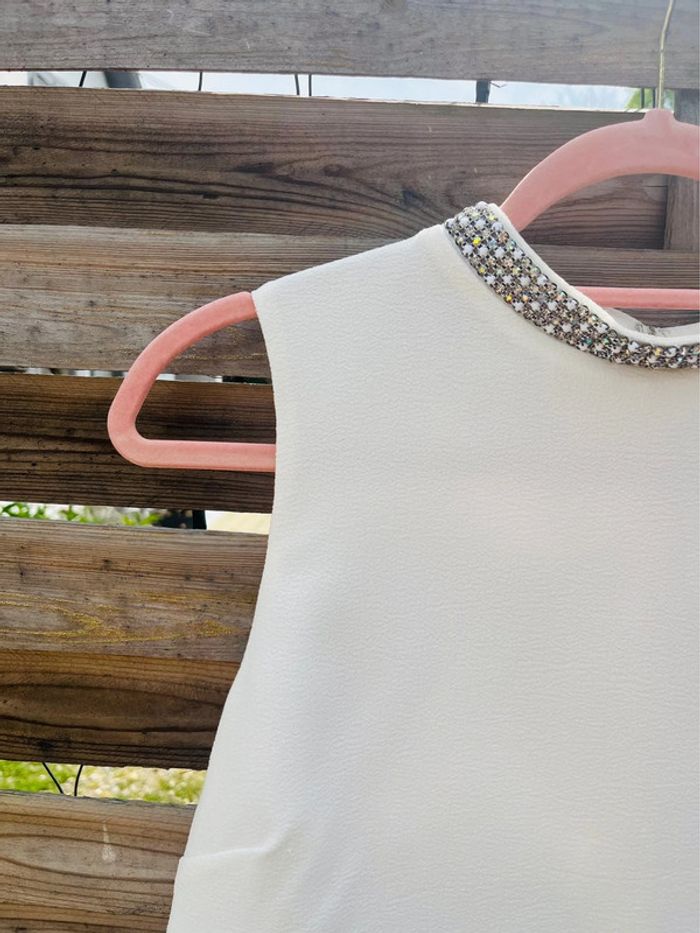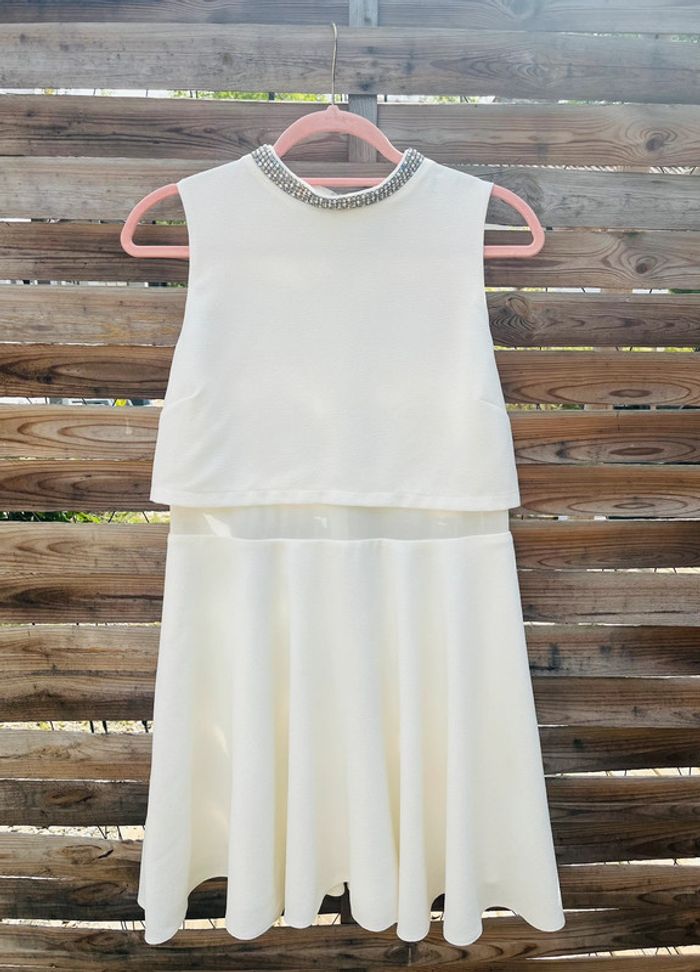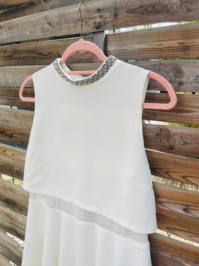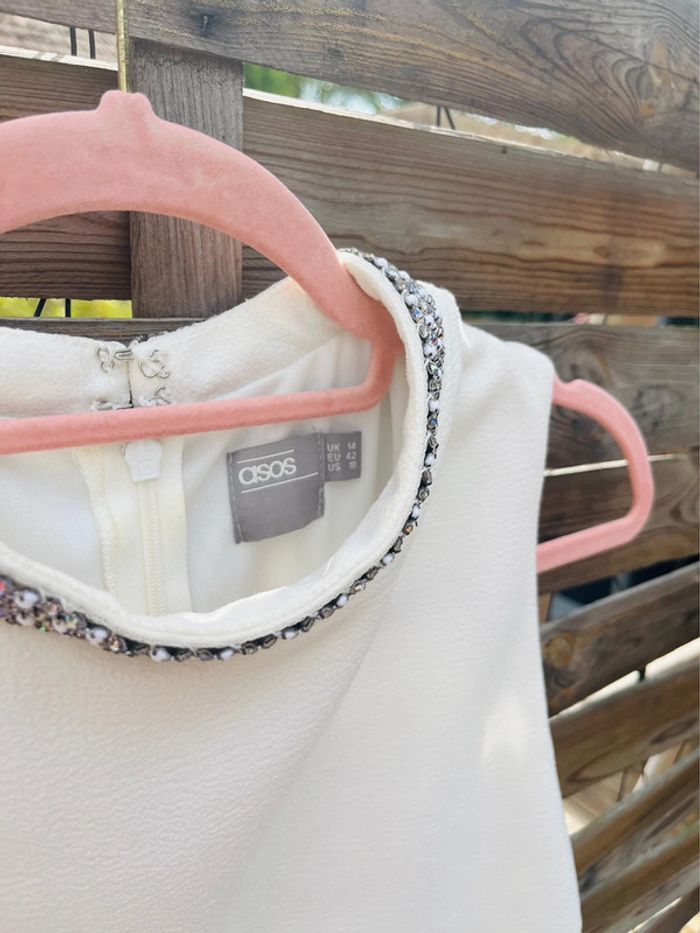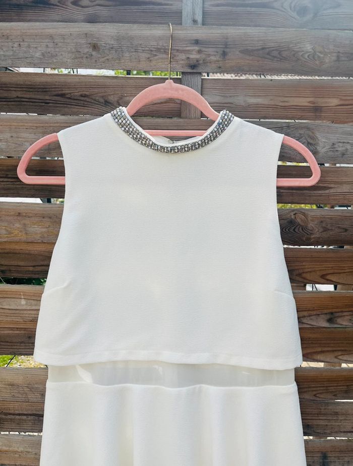 Robe blanche avec col entouré de strass Voile transparent au milieu de la robe Tirette dans le dos avec 2 crochets ASOS / TAILLE 42 / TRES BON ÉTAT (Portée 1x) Achetée 79.99€ sur ASOS