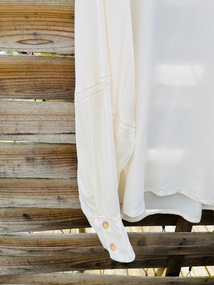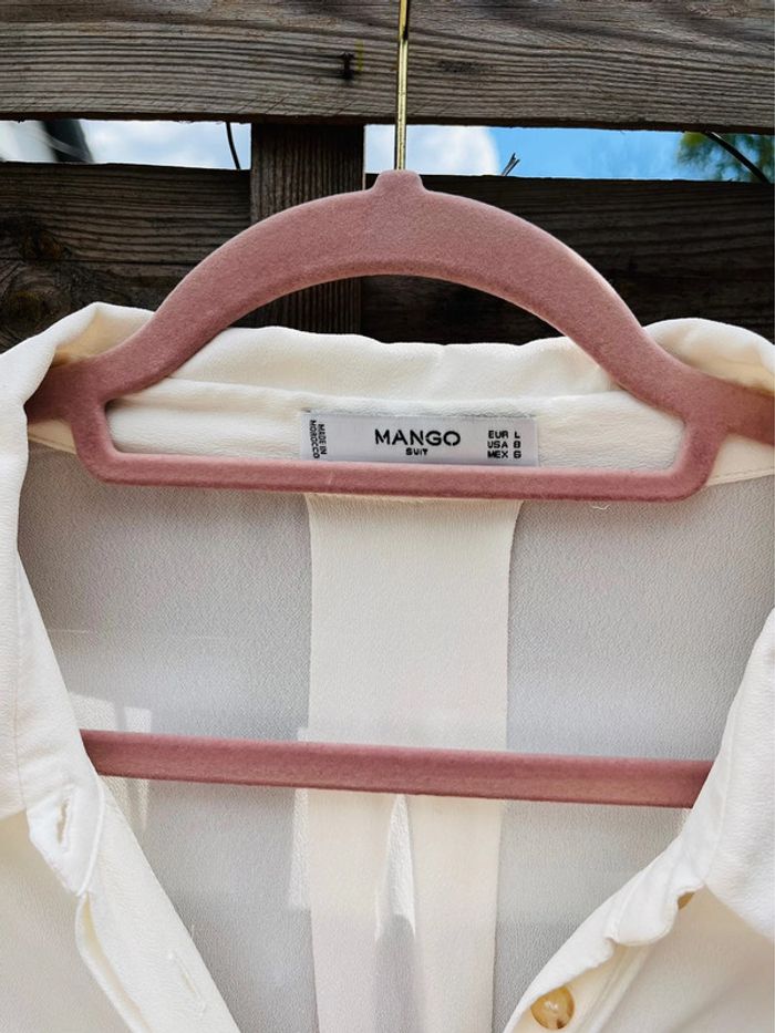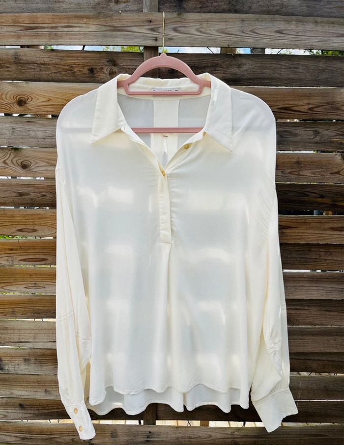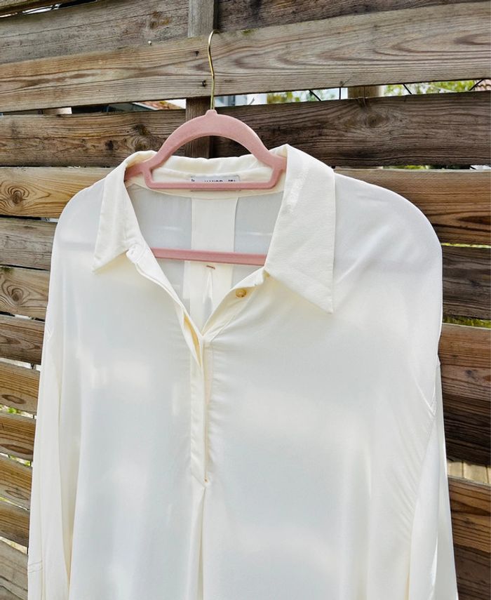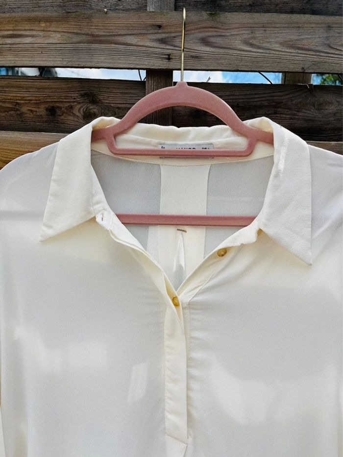 Blouse crème avec boutons sur le devant Liseré marron sur les manches & au bas de la blouse MANGO / TAILLE L / TRES BON ÉTAT (portée 1x) Acheté 29,99€ en magasin