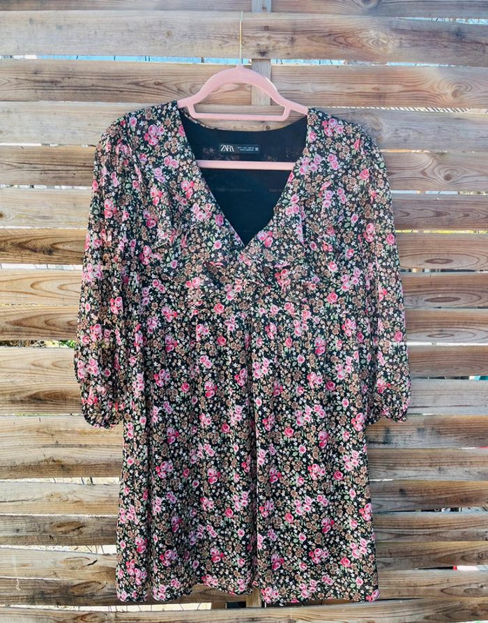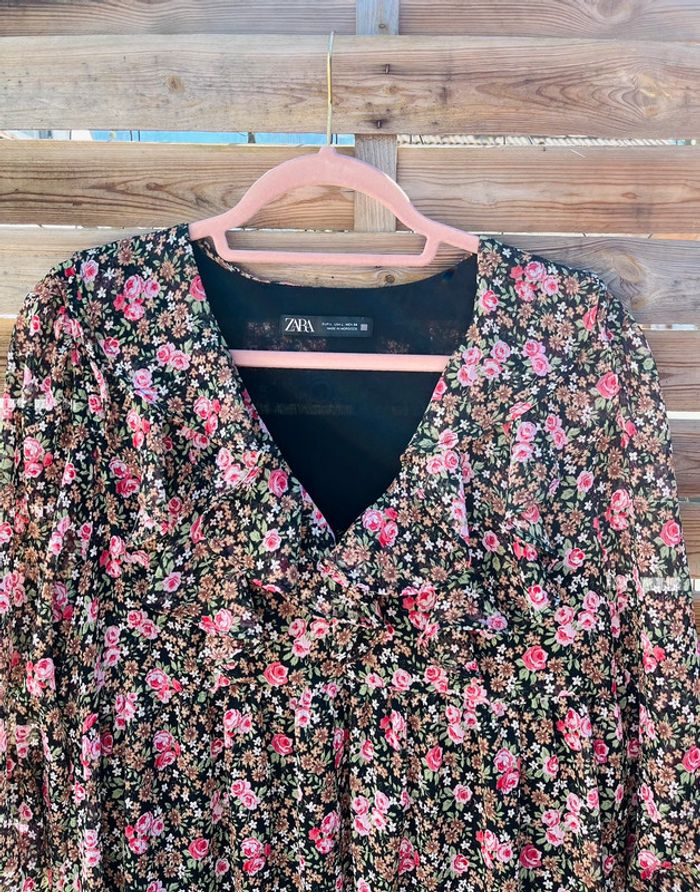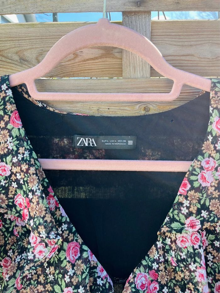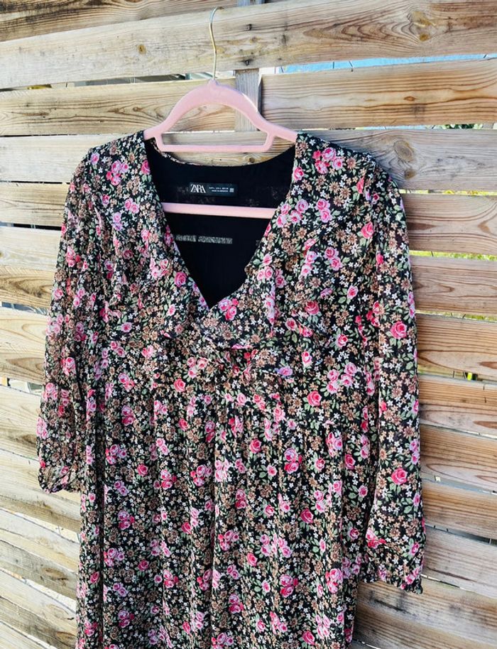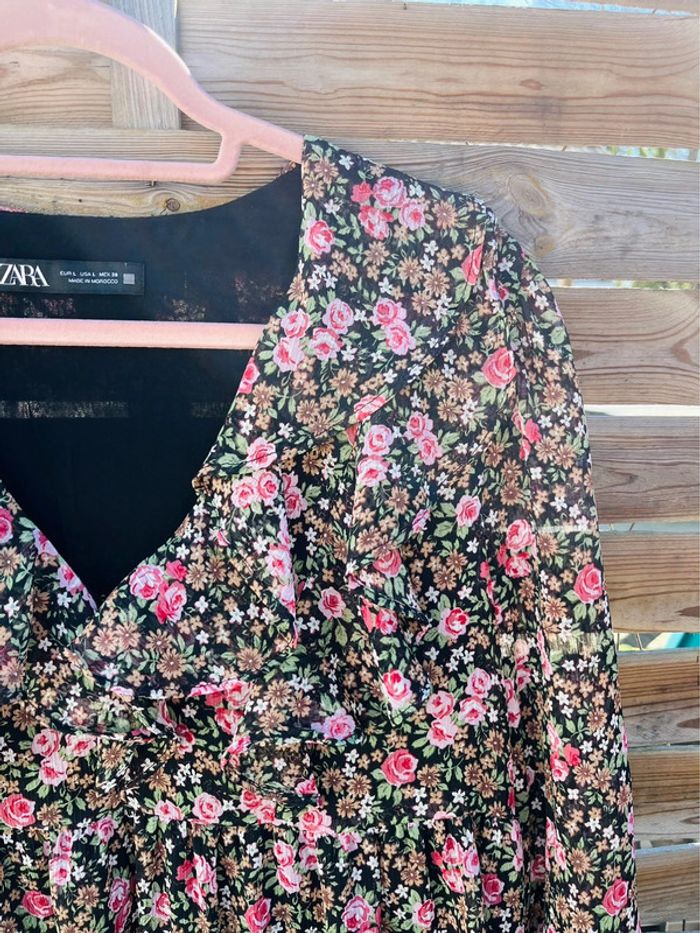 Robe à motifs fleurs Manche 3/4 transparente Petite attache au niveau du décolleté ZARA / TAILLE L / TRES BON ÉTAT Achetée 39.99€ en magasin.