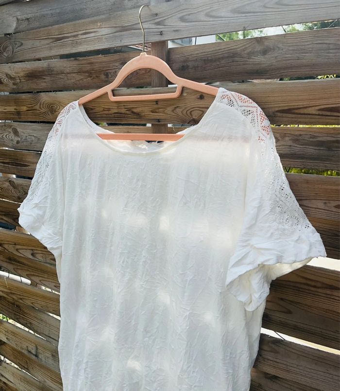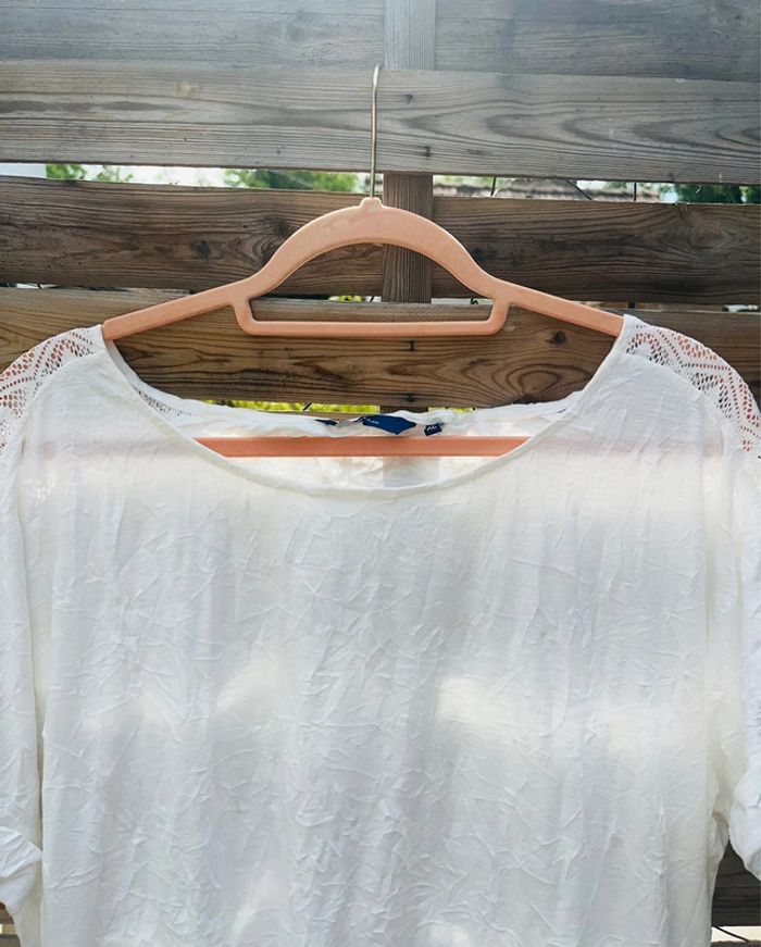 T-shirt effet froissé blanc Dentelle sur les épaules TOM TAILOR / TAILLE XL / TRES BON ÉTAT Acheté 29,99€ sur internet.