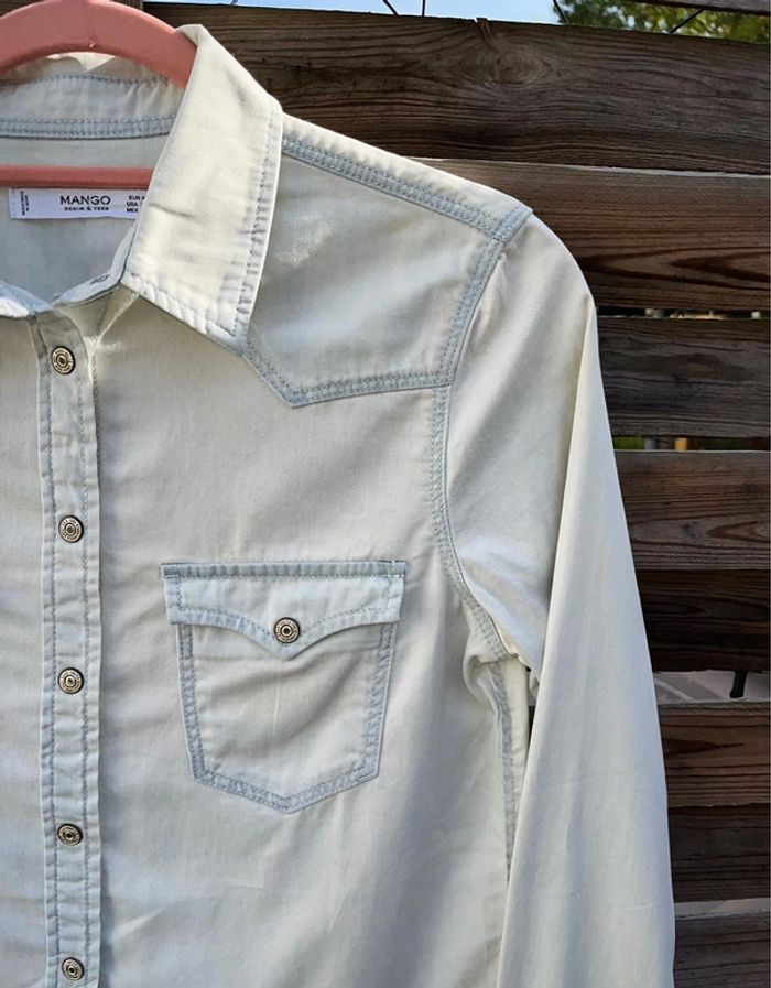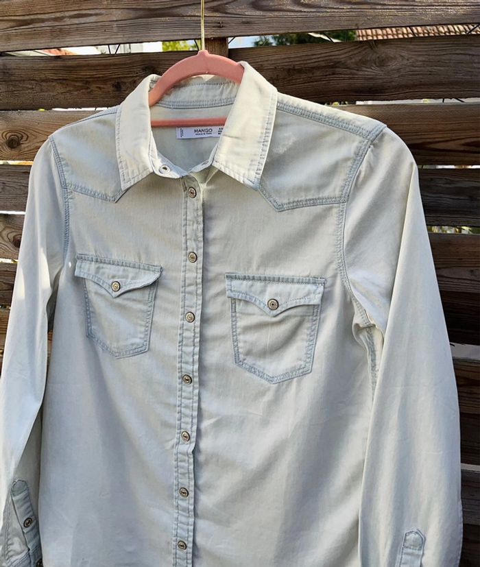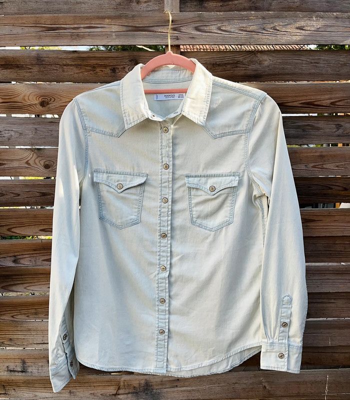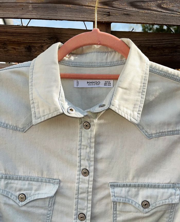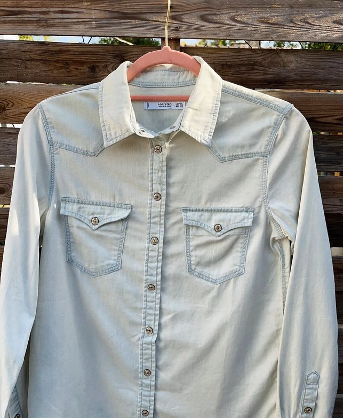 Chemise en jean clair Col & poches sur le devant MANGO / TAILLE XS / TRES BON ÉTAT Achetée 35.99€ en magasin.