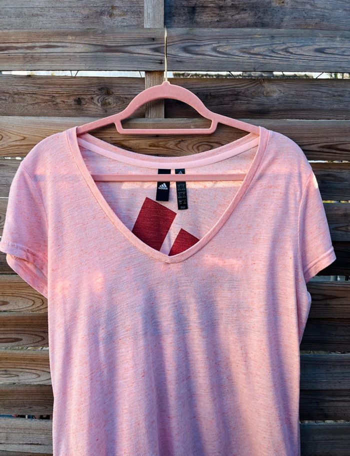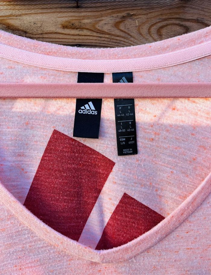 T-shirt ADIDAS rose pâle/saumon Gros logo dans le dos TAILLE L (44-46 ⚠️) / TRÈS BON ÉTAT Acheté 35€ à Intersport.