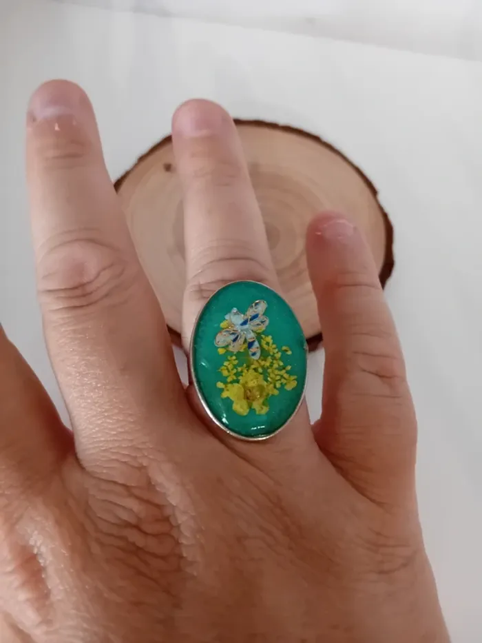 Bague fleurs séchées libellule résine - photo numéro 4