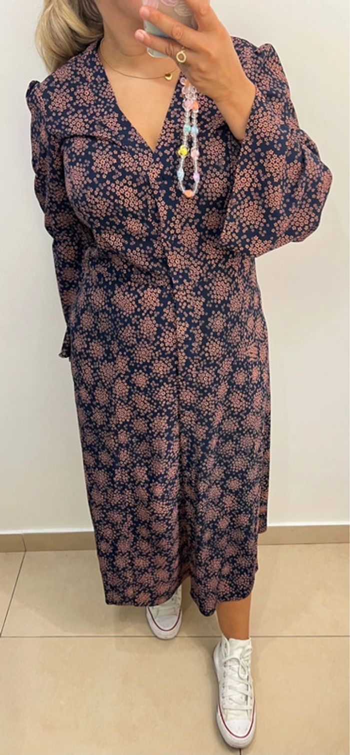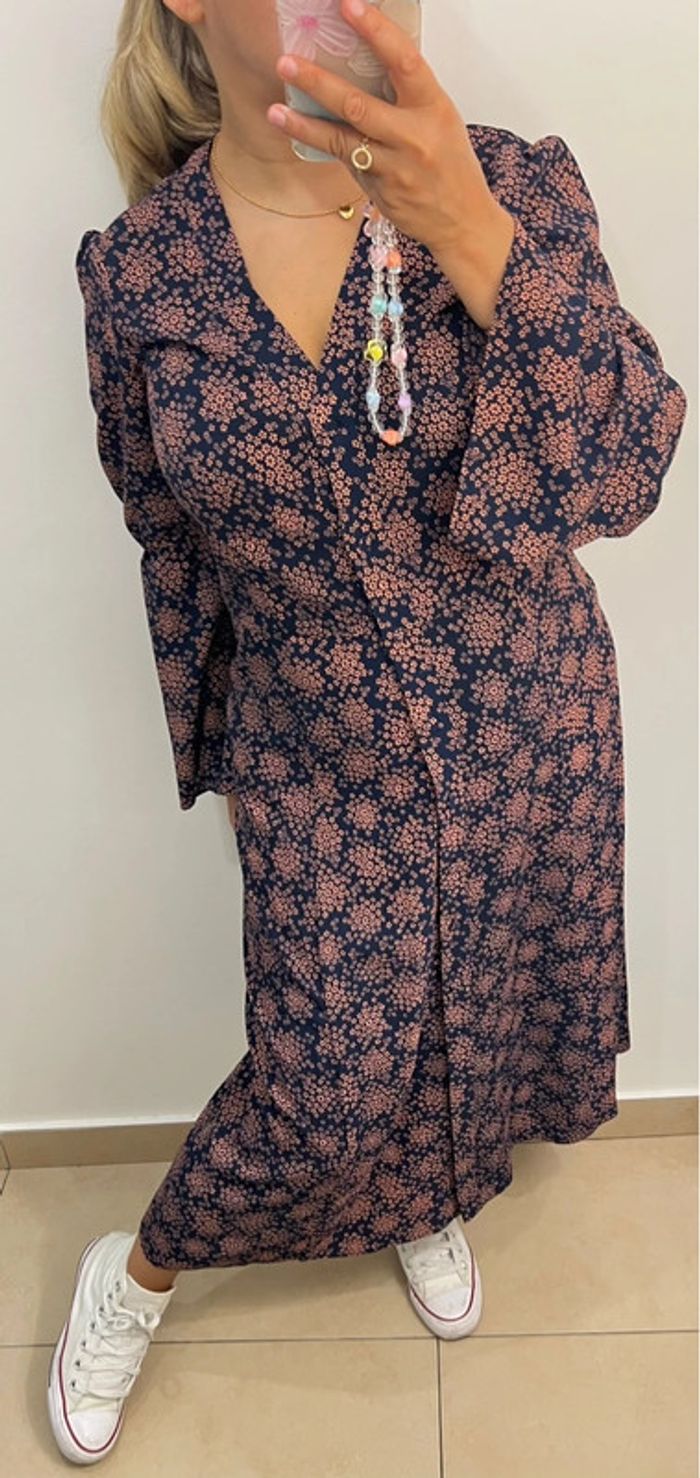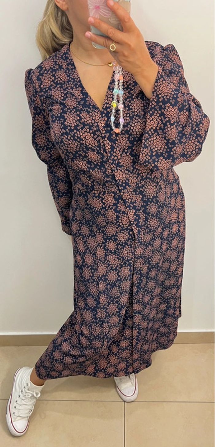 Robe longue boutonnée tout le long Col avec boutons Manches longues trompette Taille 38 Longueur 125cm Largeur épaules 37cm Largeur aisselles 49cm Largeur taille 40cm En polyester et elasthanne