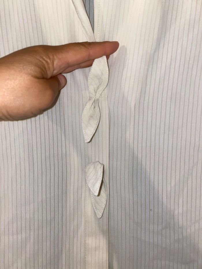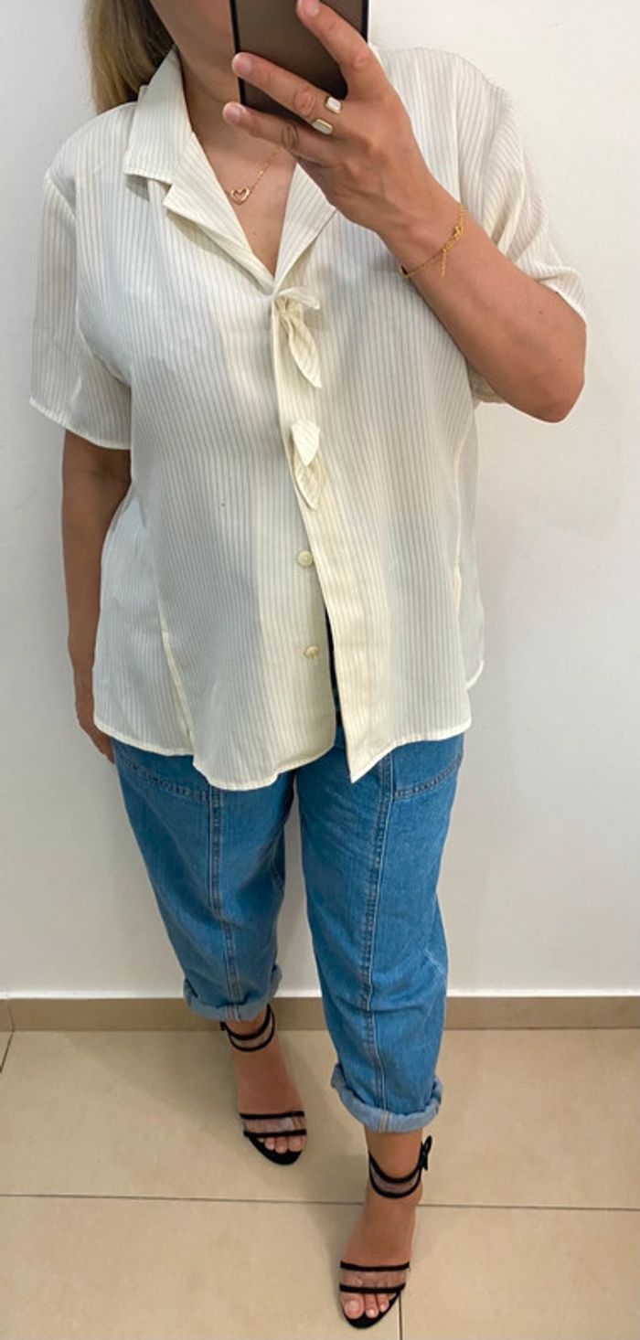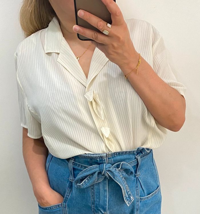 Chemise fluide rayée taille 44 en polyester Pas d’étiquette de la taille ni de composition Légèrement fendu sur les côtés devant 📏 Mesures : -Longueur : 62cm -Largeur épaules : 44cm -Largeur aisselles : 57cm 📦 Envoi rapide. ❤️ Abonne-toi pour ne rien rater ⸻