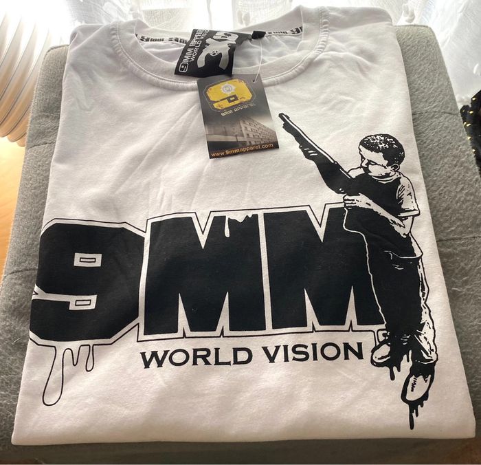 Tee Shirt Imprimé 9 MM Taille M Longueur 69Cm Largeur Epaules 45Cm Largeur Aisselles 54Cm En Coton
