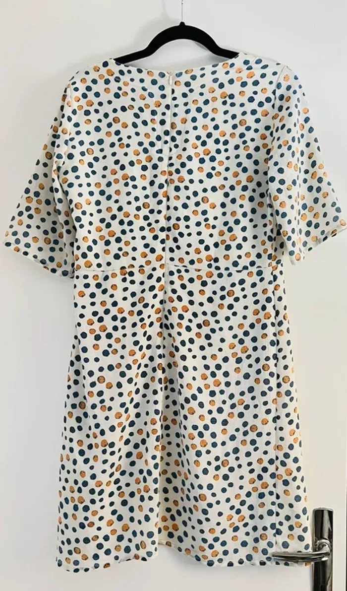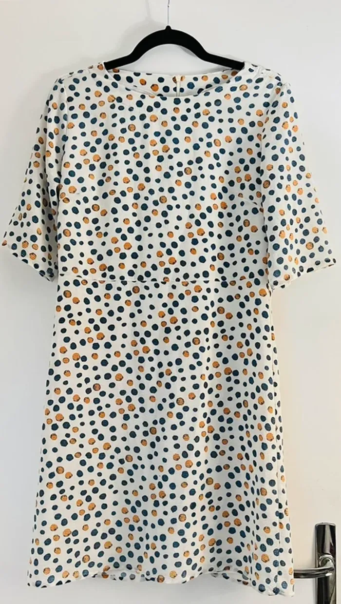 Robe droite à pois Taille 36 Longueur 86cm Largeur aisselles 48cm En polyester Doublée