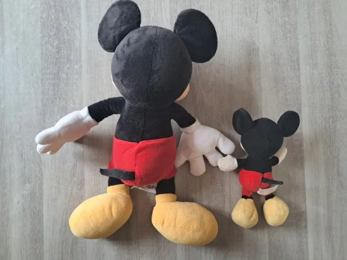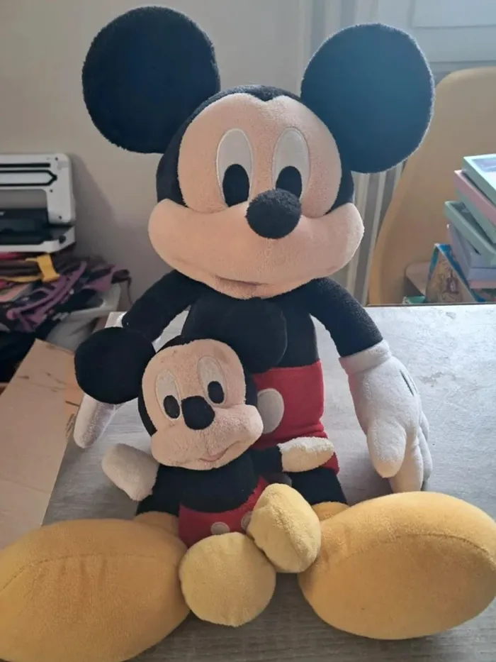 Lot composée de 2 peluches mickey Marque : Disney Dimension : * 40 cm pour l'une * 22 cm pour l'autre En très bon état Idéal pour offrir