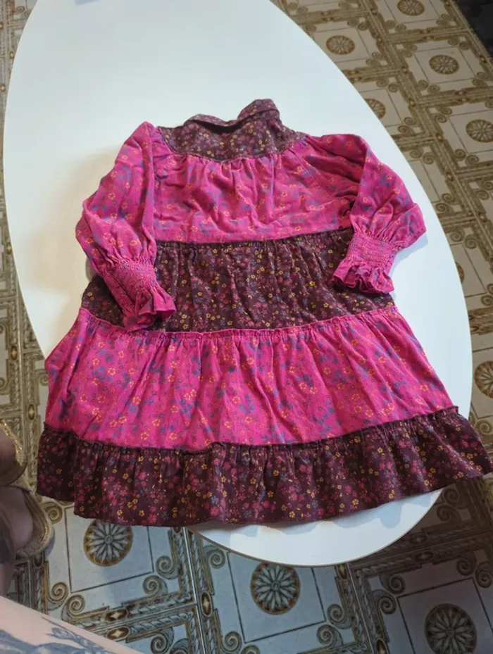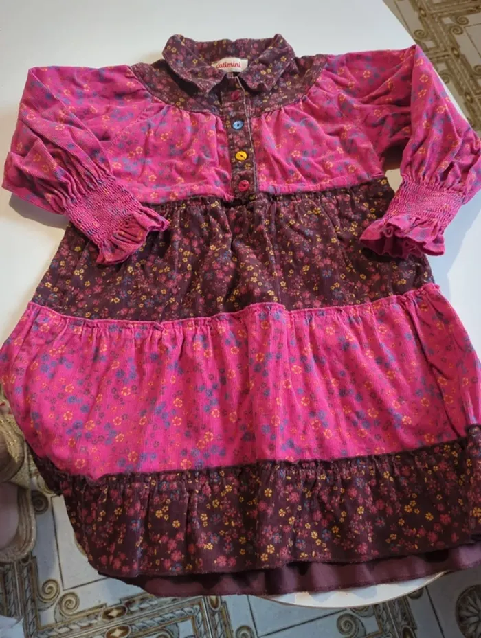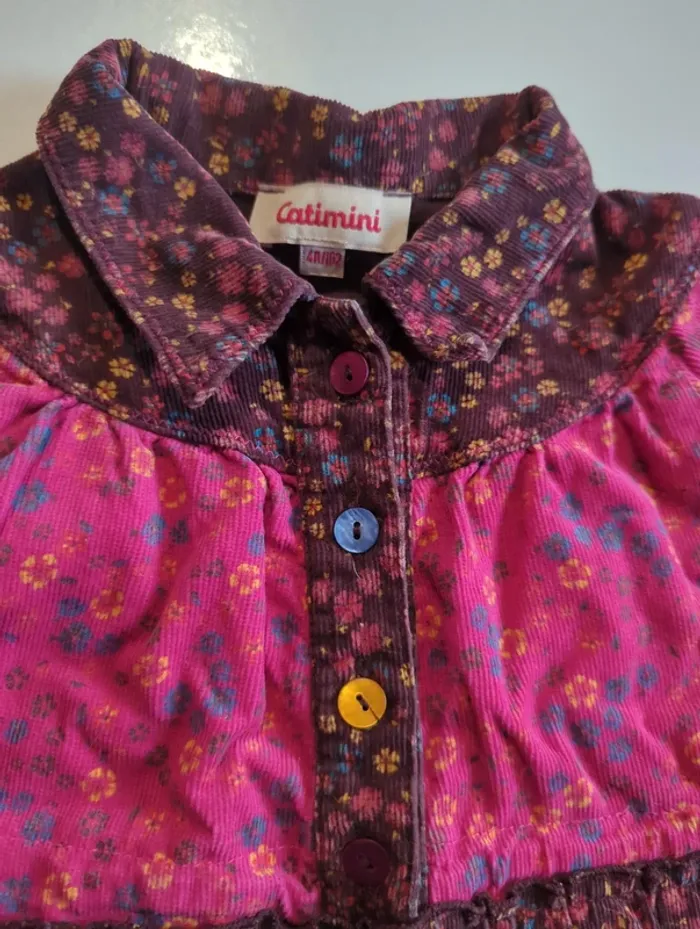 Jolie petite robe catimini vintage, Velours, Fleurie Taille 4 ans, 102 cm, Il y a deux trous de boutons car il devait y avoir une ceinture au niveau de la taille -carton1-