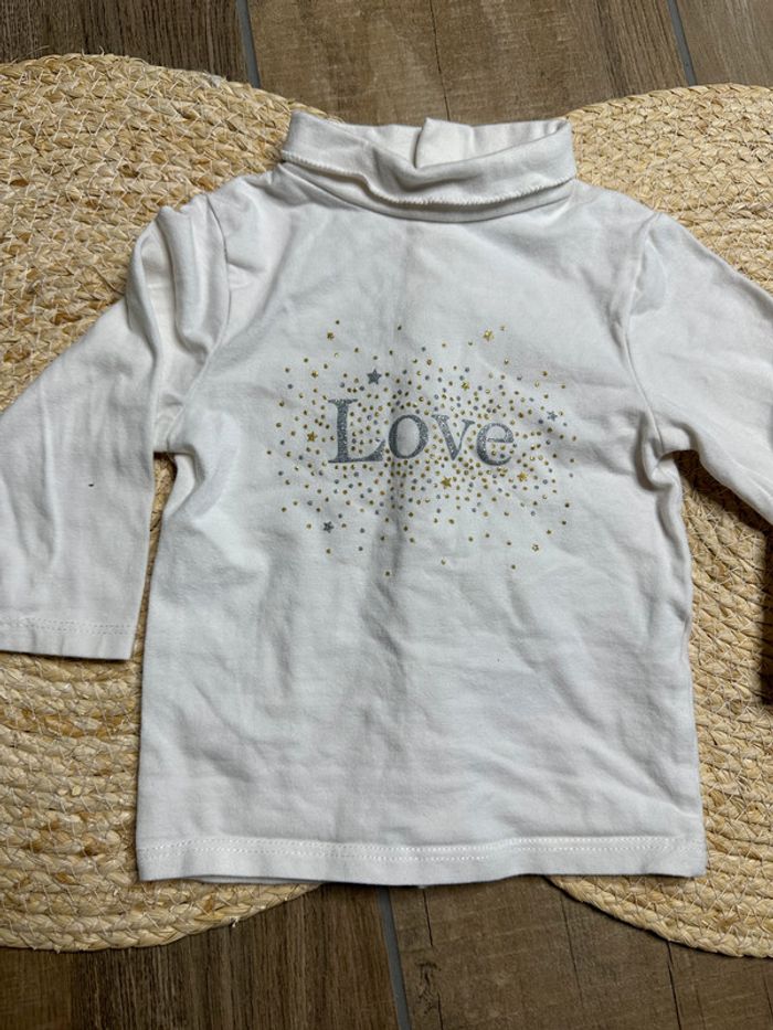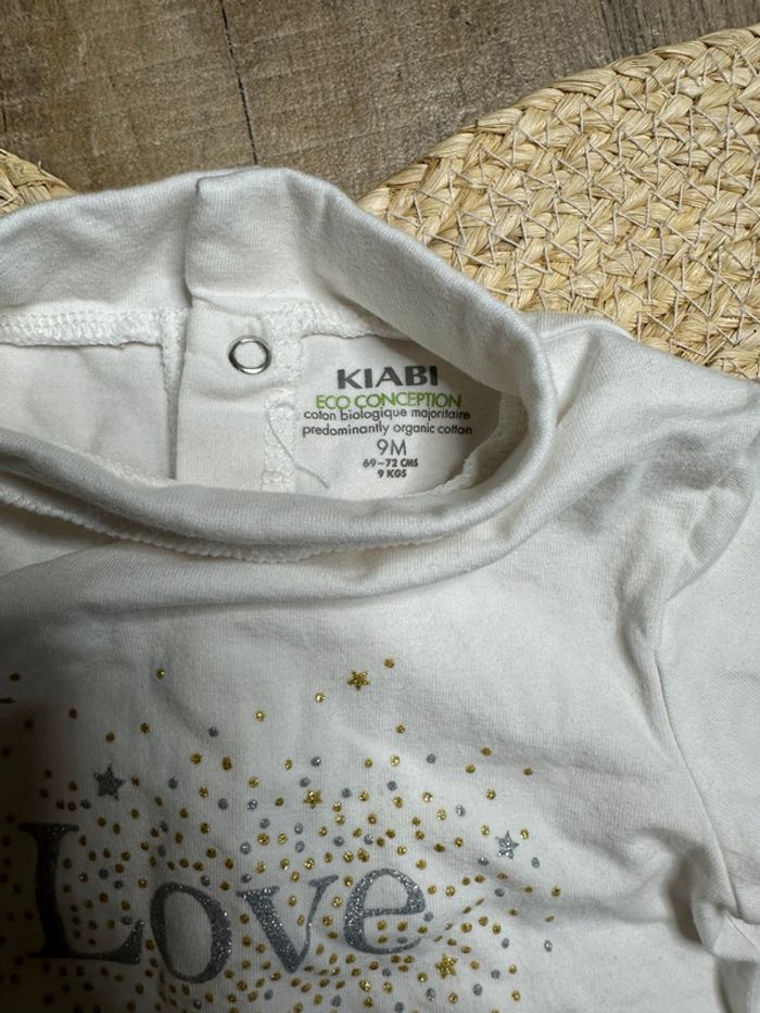 👕 T-shirt manches longues Kiabi - Taille 9 mois ✨ Très bon état, aucun défaut visible 💖 Motif “Love” avec petites étoiles dorées et argentées 🌟 Matière douce et agréable, parfait pour les journées fraîches 👶 Facile à enfiler, idéal pour le quotidien 🔎 Rechercher : #ginger21anna9mois 📦 Envoi rapide et soigné