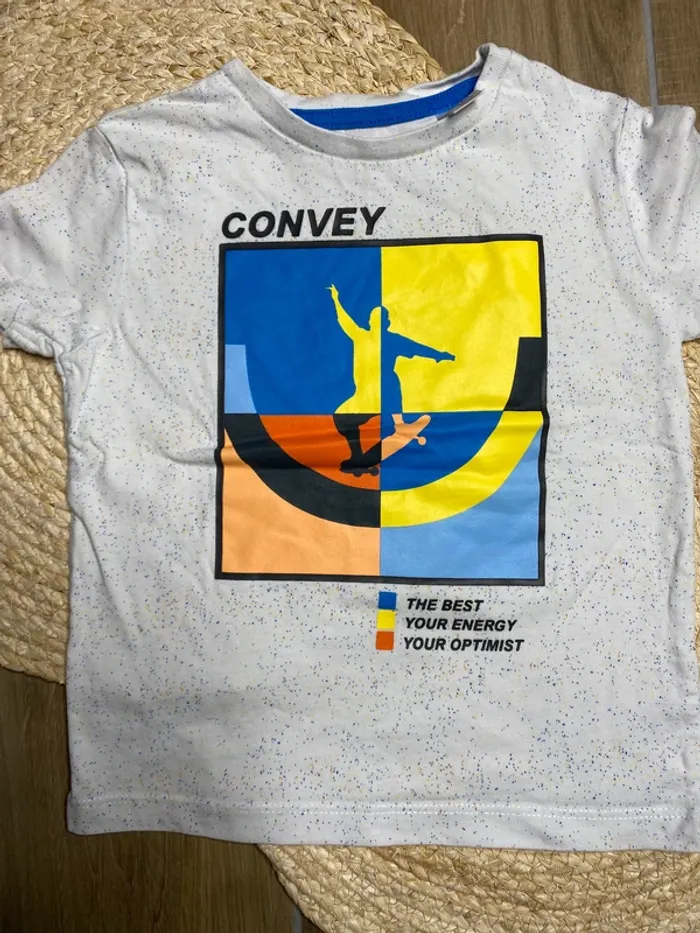 👕 T-shirt manches courtes - 3 ans 🎨 Blanc avec motif coloré et message inspirant 🌈 Multicolore, fun et plein d’énergie 🧼 Excellent état, prêt pour une nouvelle aventure 📍 Marque : Okaïdi 🔎 Recherche : #ginger21anna3ans 📦 Envoi rapide et soigné #okaidi #tshirtgarçon #modeenfant #3ans #vintedkids #lookcoloré #énergiepositive