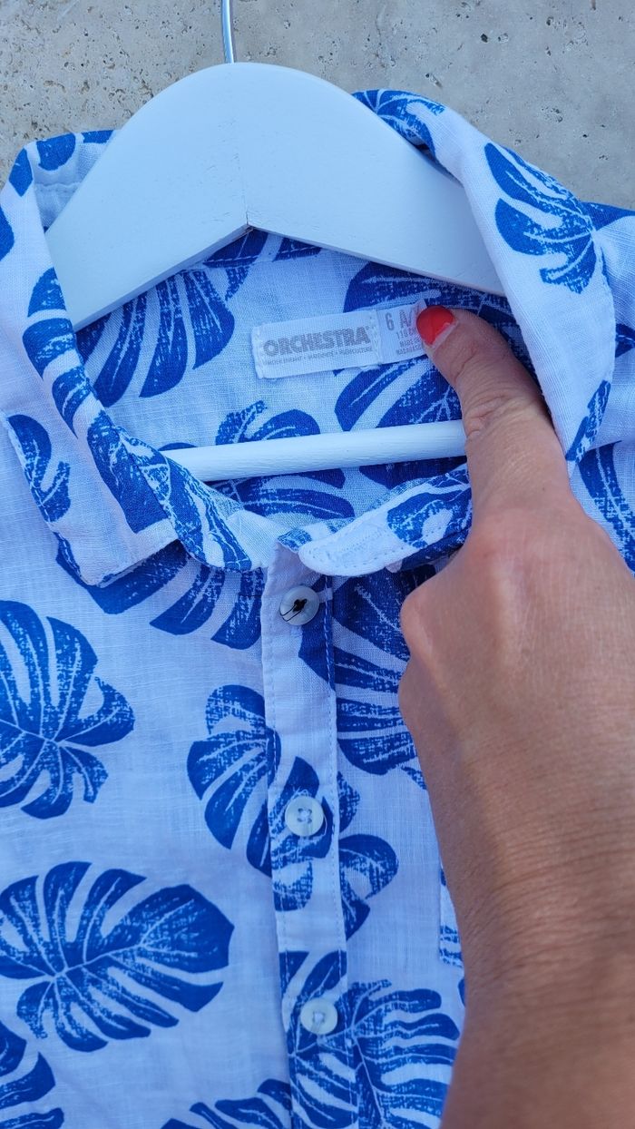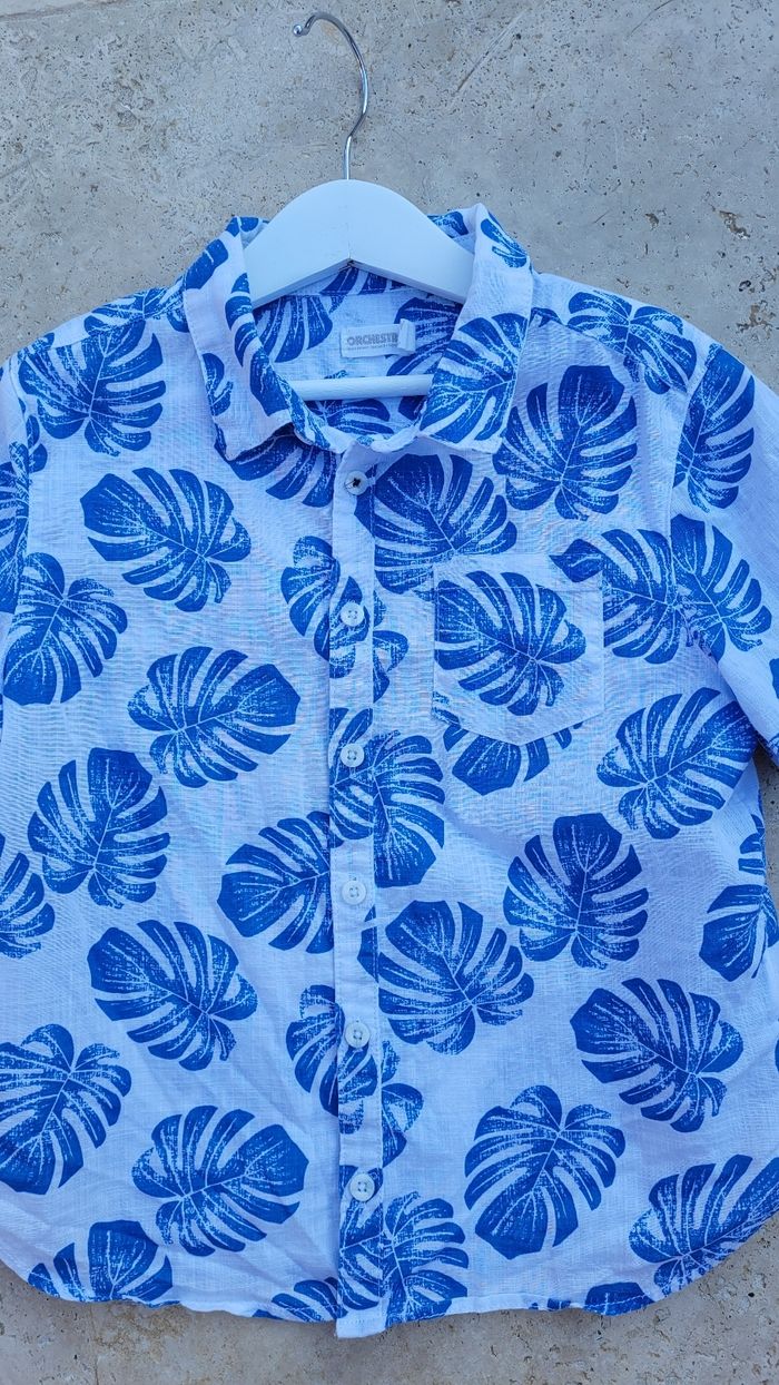 Chemisette légère blanche à feuillage bleu orchestra 6ans