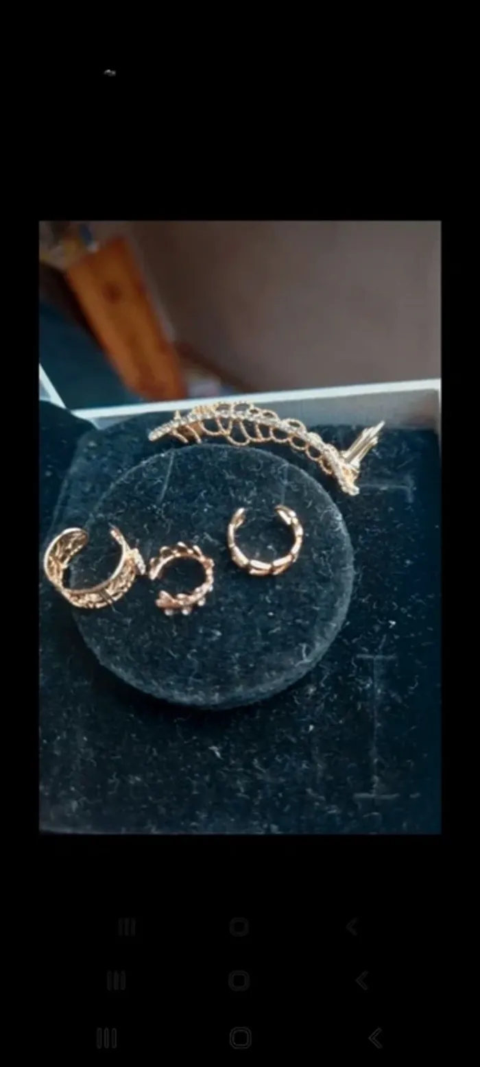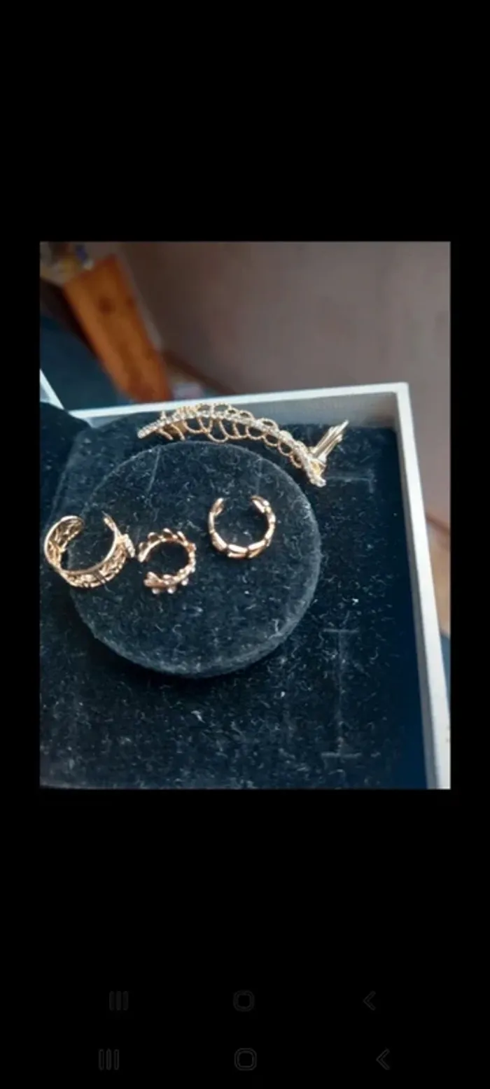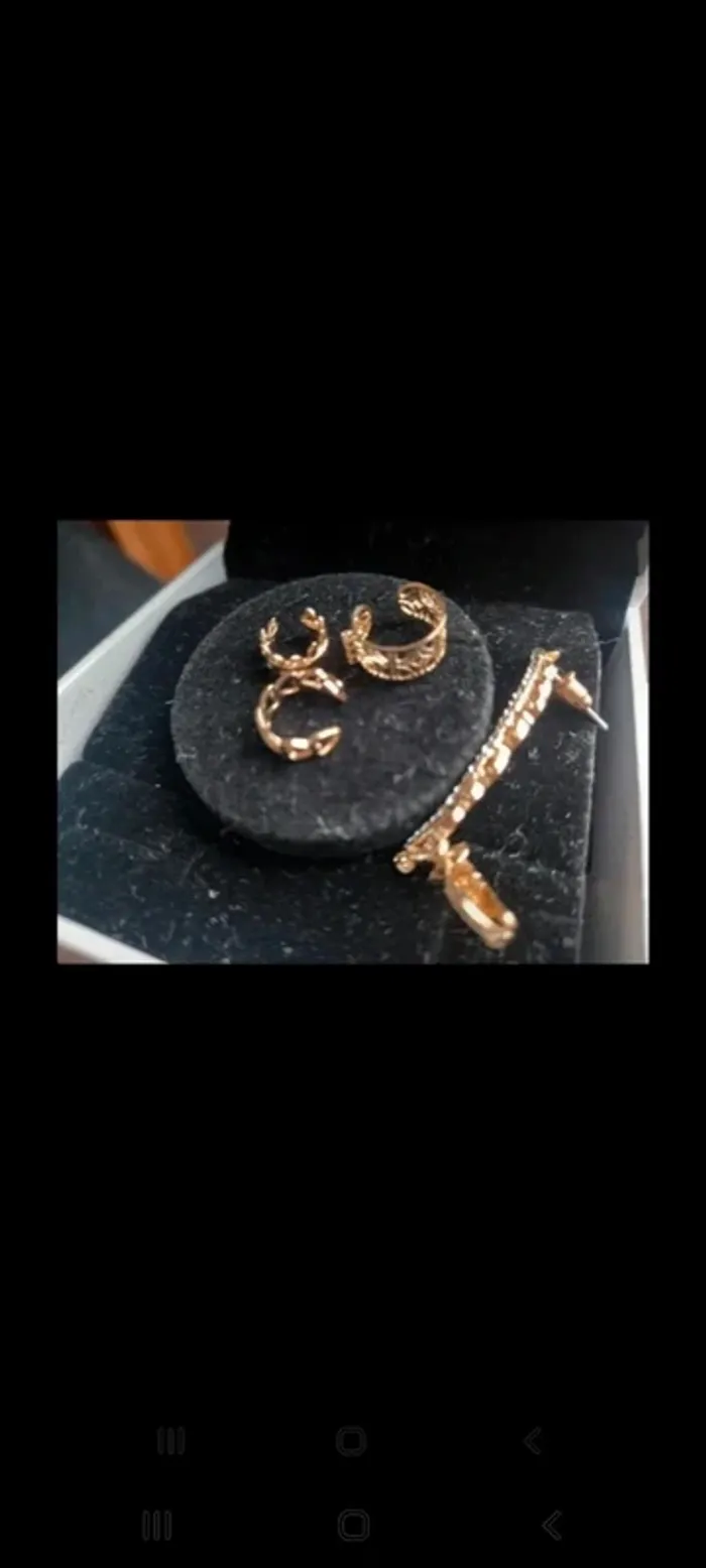 Bijoux 💍 d'oreilles coordonnés : 3 tours d'oreille et une boucle d'oreille à percer. Le tout coordonné mais peut être porté séparément. Le tout neuf jamais porté