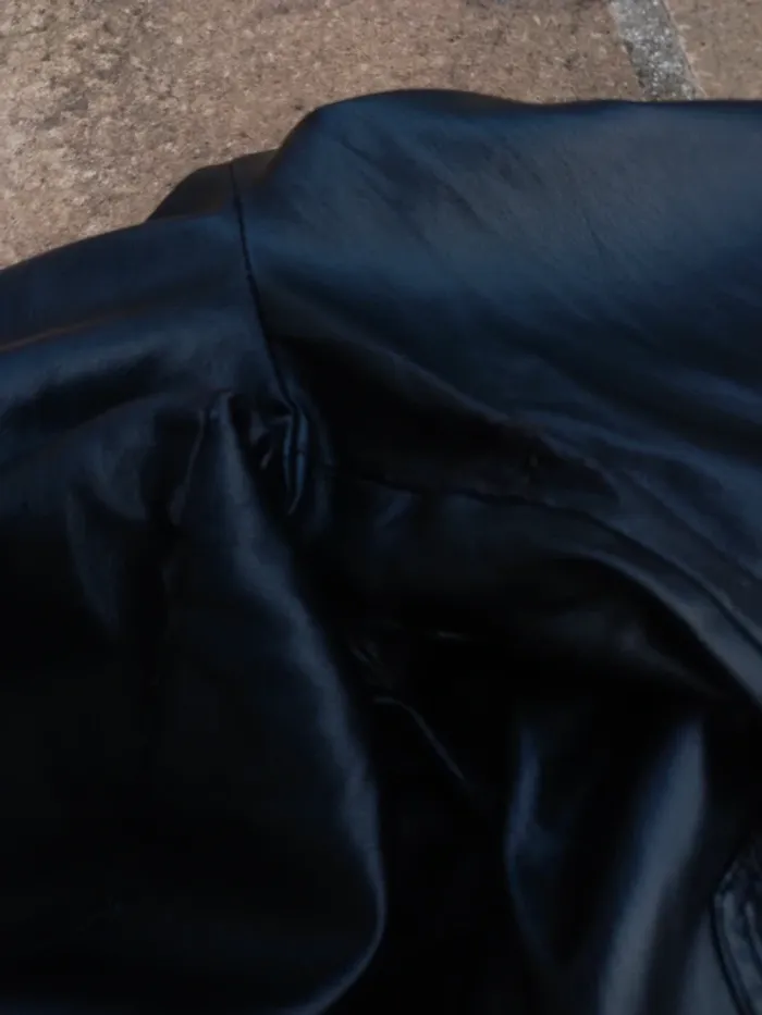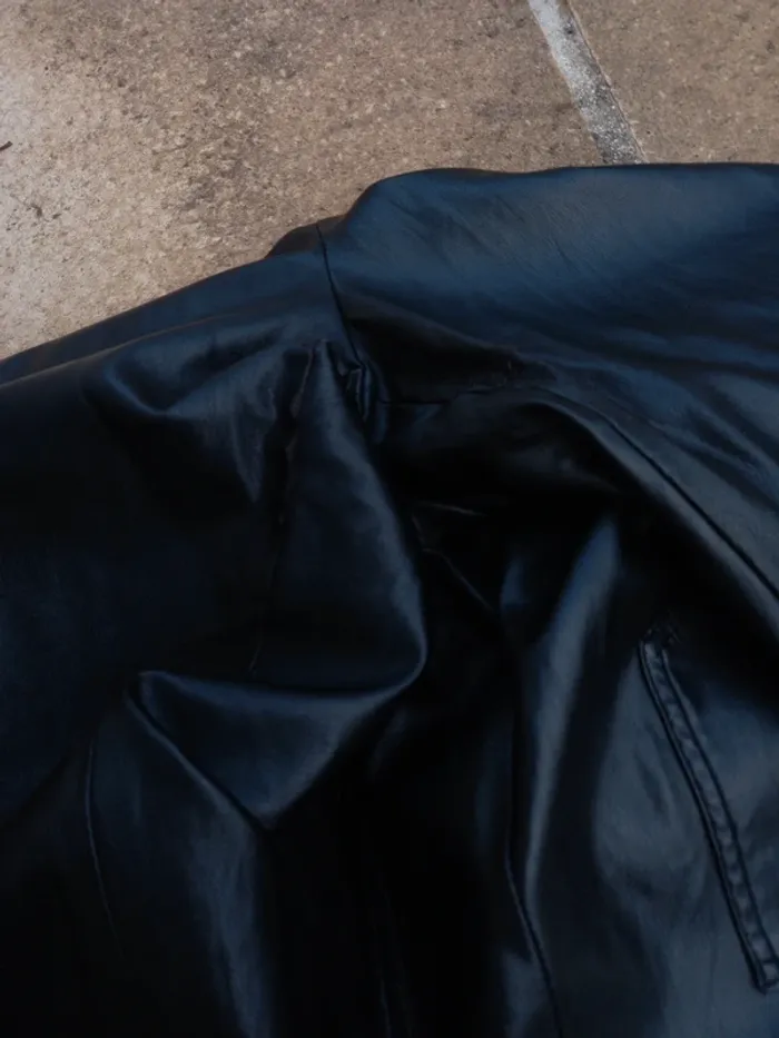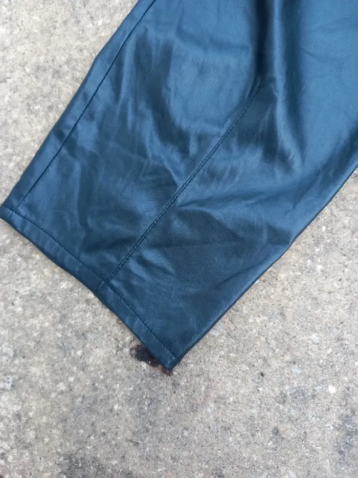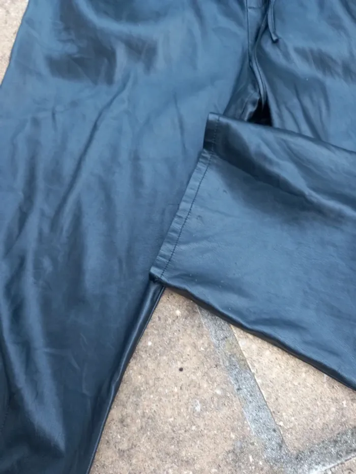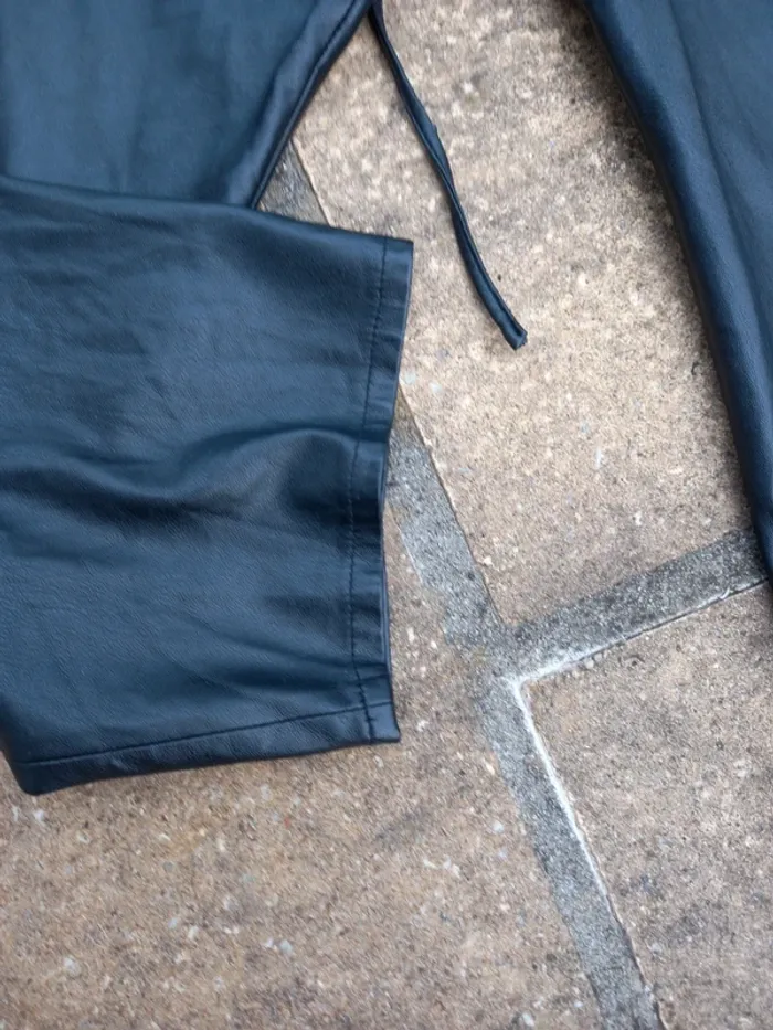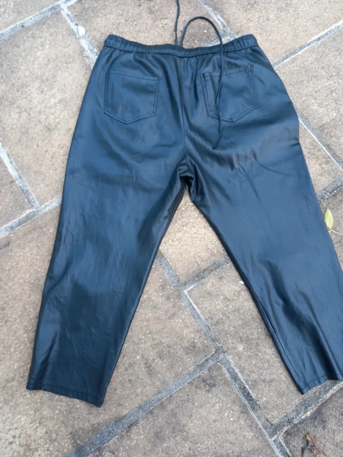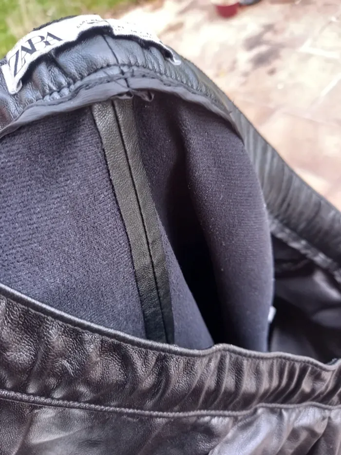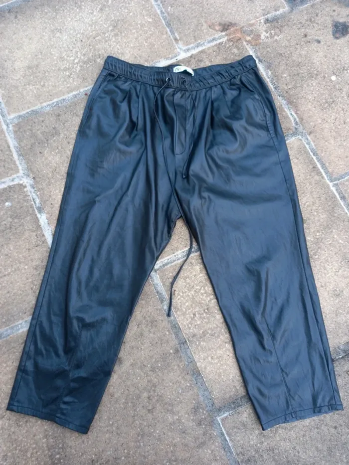 Pantalon Zara XL en simili noir en très bon état à l'exception d'une usure à l'entrejambe (photo). Taille élastiquée avec cordelette pour resserrer la taille.