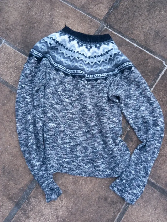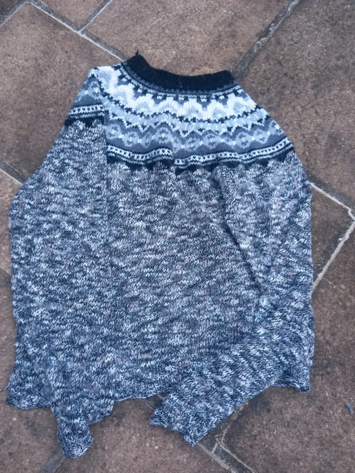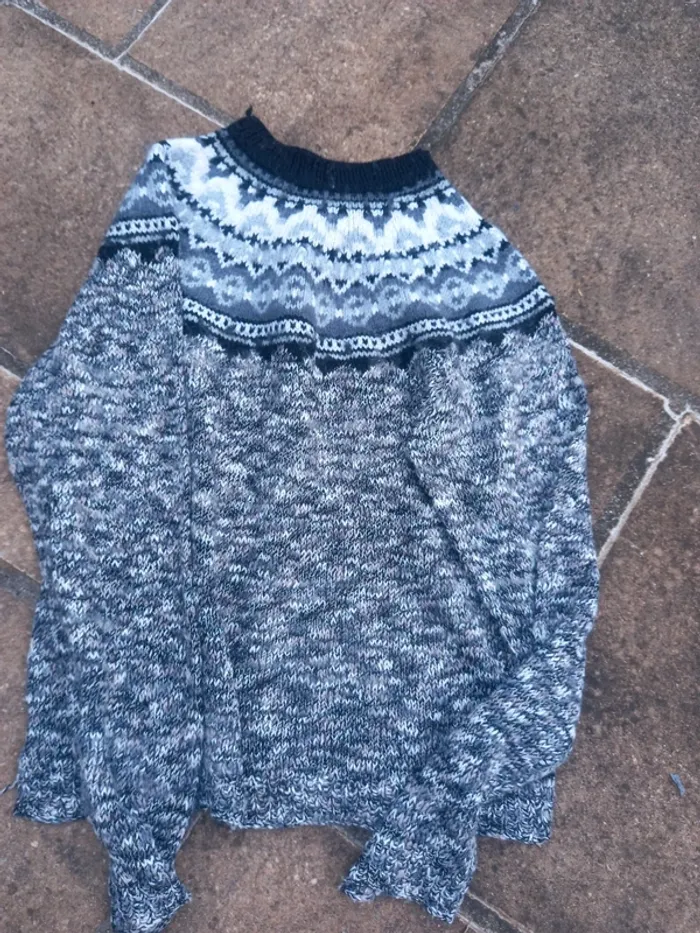 Pull en vraie laine tricoté main. Bien chaud et confortable et agréable à porter. Très belle qualité de laine