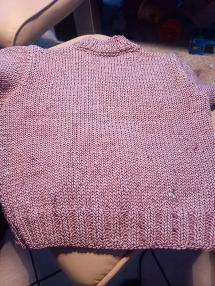 Pull rose 4-6 ans en vraie laine tricoté main - photo numéro 2