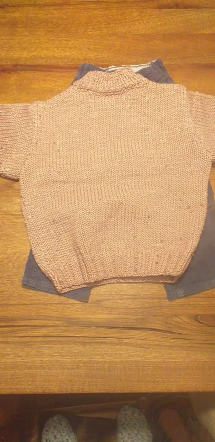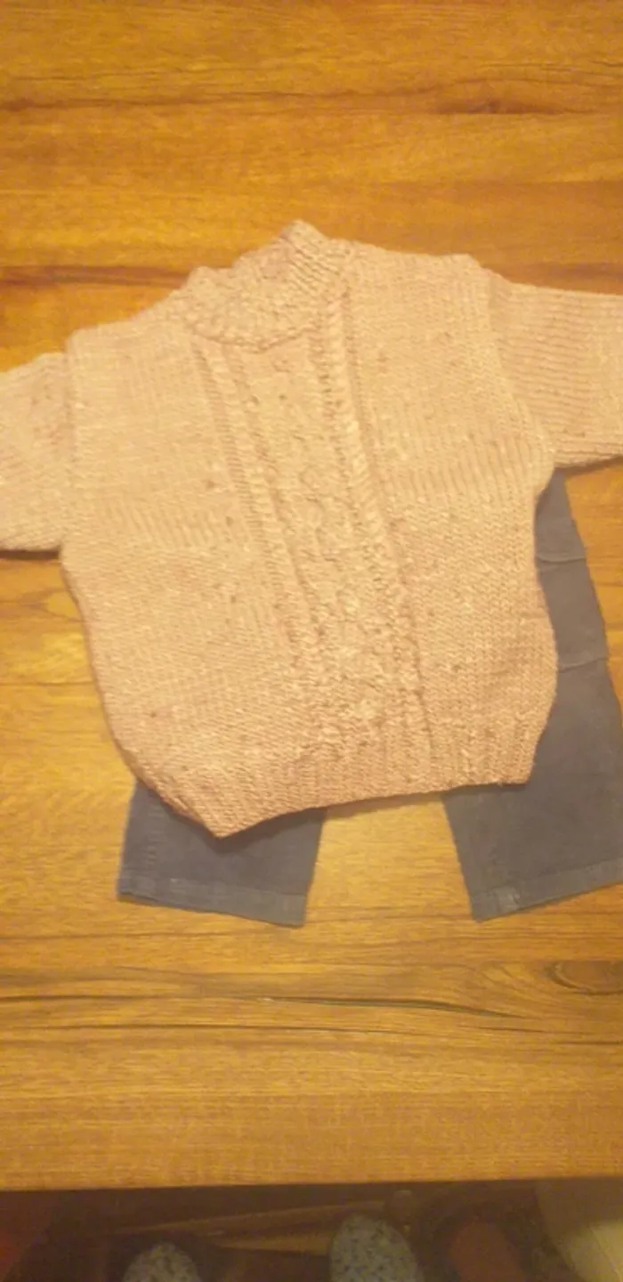 Pull rose 4-6 ans en vraie laine tricoté main - photo numéro 1