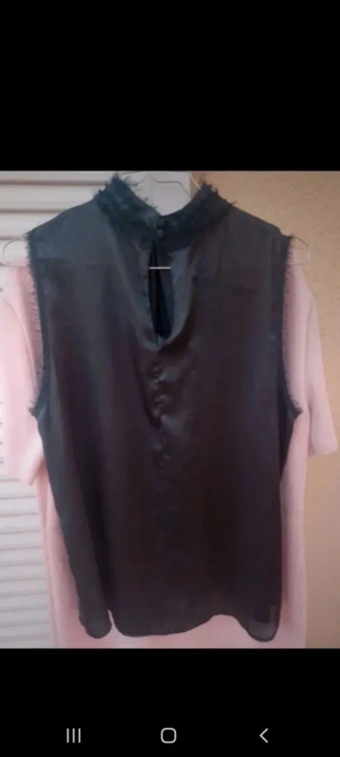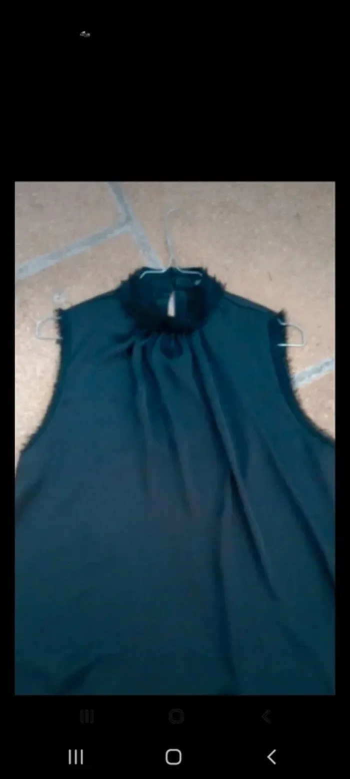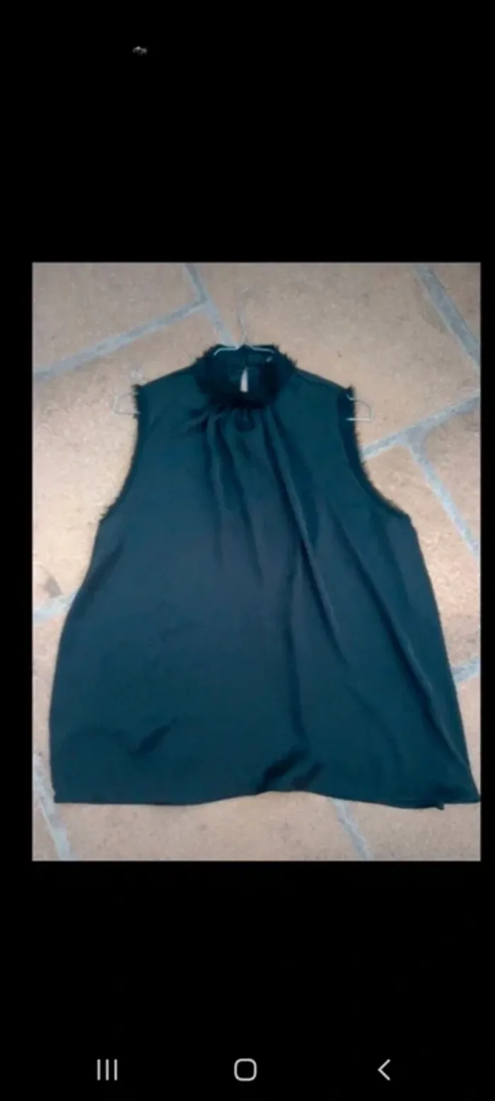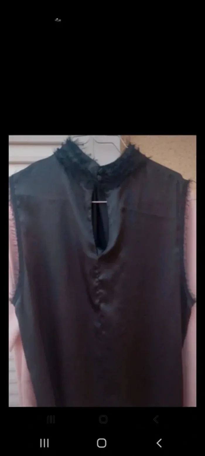 Top blouse fluide sans manches avec petits boutons dos encolure. Tissu satiné
