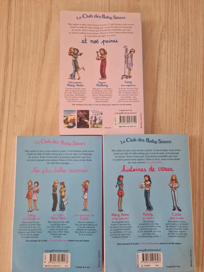 3 tomes du club des baby-sitters Gallimard jeunesse * nos joies et nos peines * nos plus belles vacances * nos plus belles histoires de coeur En tres bon etat