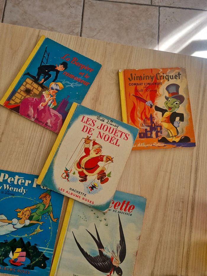 5 livres de la collection " les albums roses" Imprimé en France * Peter Pan et Wendy 1953 * Poucette 1954 * La bergère et le ramoneur 1956 * les jouets de Noël 1951 * Jiminy criquet combat l'incendie 1956 Vu leur âge, ils sont en très bon état de conservation. Photos supplémentaires possible si besoin.