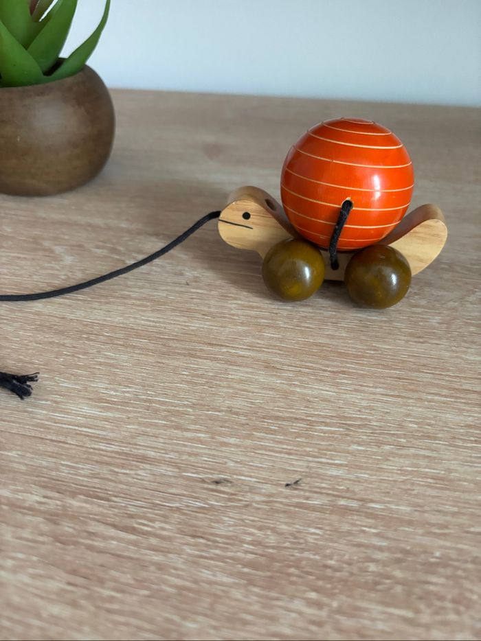 Tut tut tortue jouet à tirer en bois Quand on tire sur le cordon la roue tourne