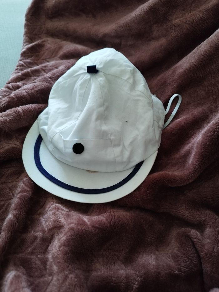 Casquette 12 mois blanche déco bleu marine - photo numéro 1