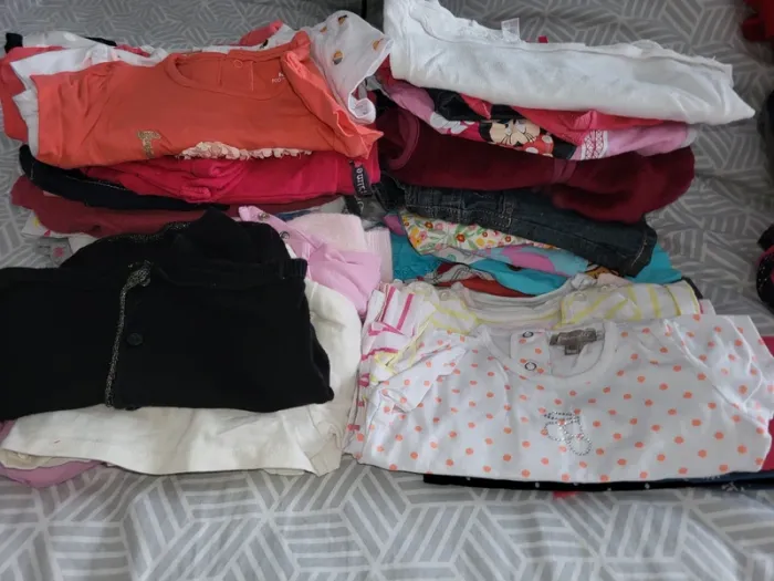 lot de vetement pour bébé fille 6 mois 68 cm le lot contient 49 pièces. je fait le lot 60€ sachant qu'il y a 2 vetements encore avec des étiquettes #elostitch6moisfille