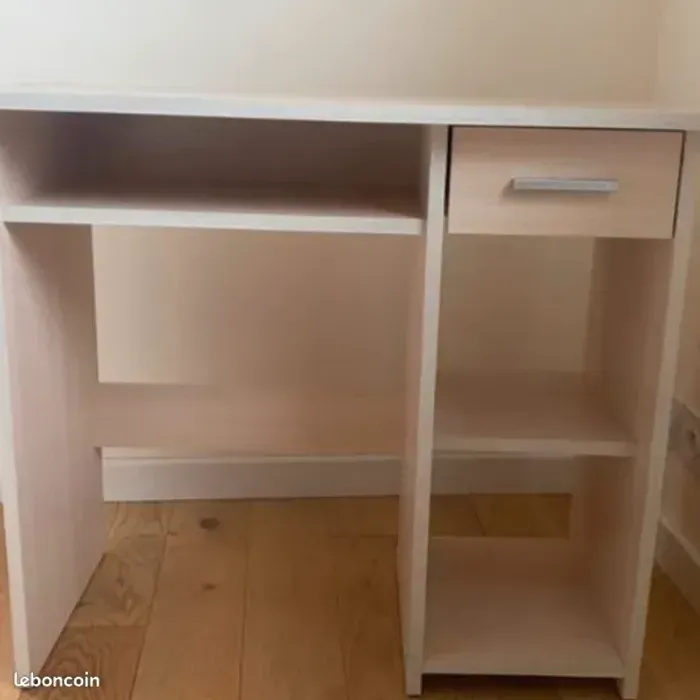 Vend un bureau pour enfant avec tiroir en bon état. Tiroir un peu abîmé sur la poignet du tiroir et une trace sur la table. Chaise en bon état. Le bureau est démonté sauf la chaise. À récupérer en main-propre
