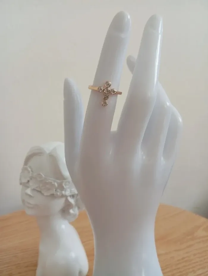Bague 53 signe croix religieuse en acier inoxydable femme - photo numéro 1
