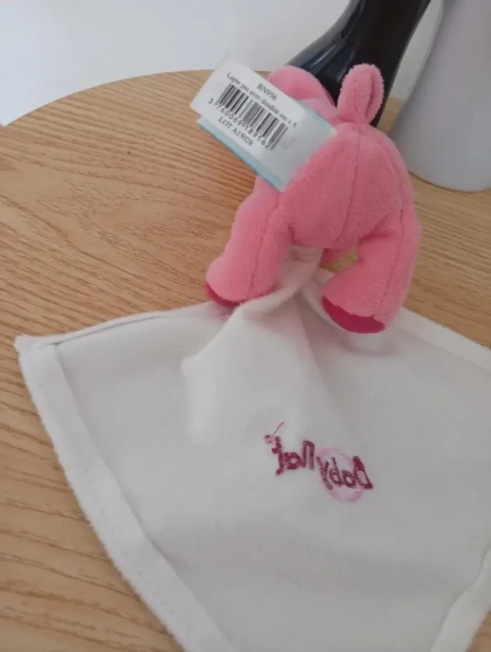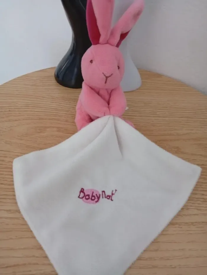Peluche doudou plat mouchoir lapin baby nat rose - photo numéro 1