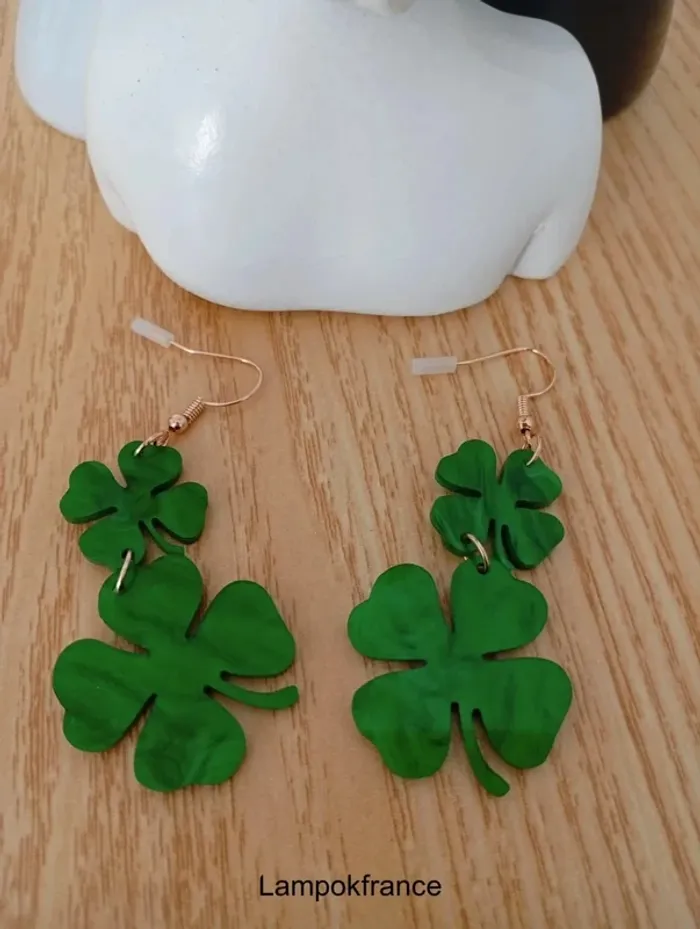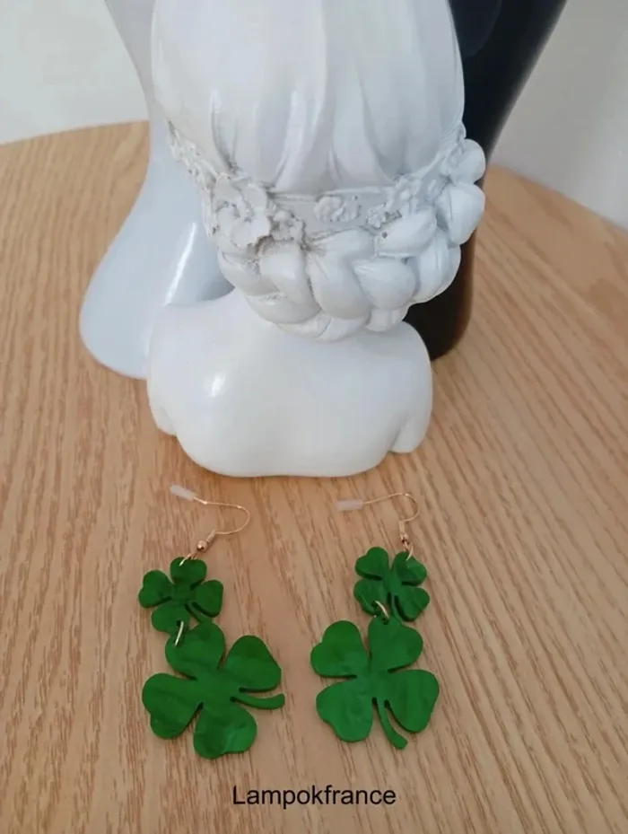 Boucle d'oreille porte bonheur trèfle quatre feuilles hippie bohème