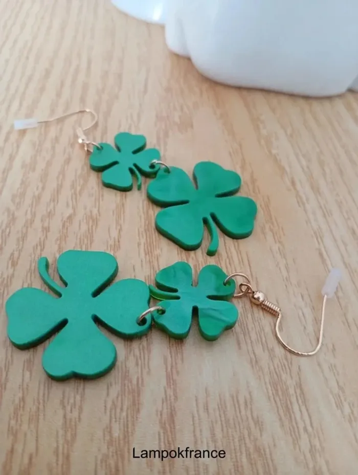 Boucle d'oreille porte bonheur trèfle quatre feuilles hippie bohème - photo numéro 1