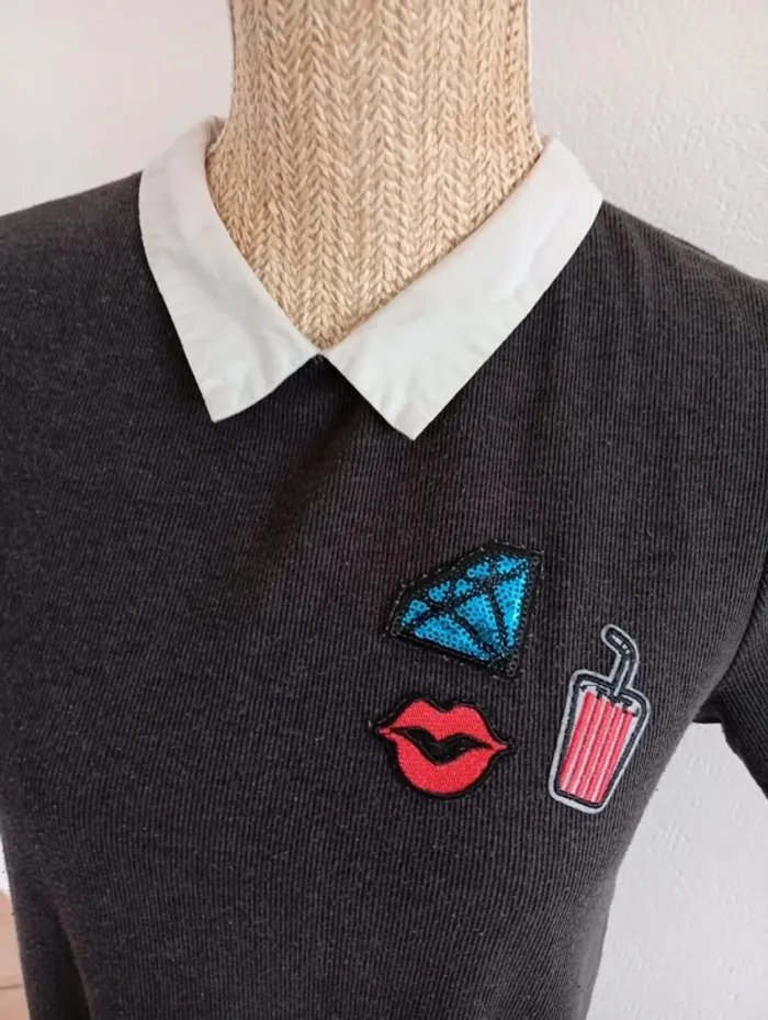 Robe vintage d'été mango courte écolière col claudine s grey dress - photo numéro 4