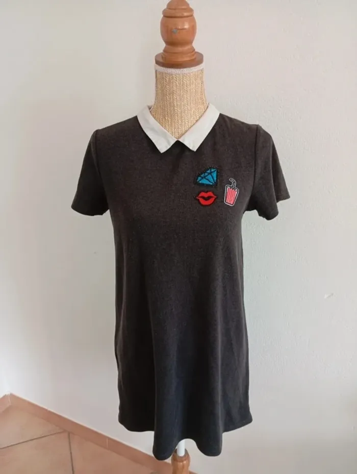 Robe vintage d'été mango courte écolière col claudine s grey dress - photo numéro 2