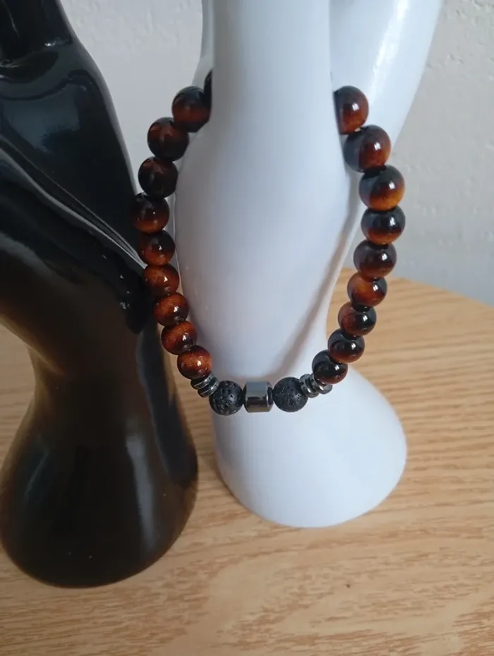 Œil du tigre onyx noir homme bracelet en pierres naturelles Lithothérapie - photo numéro 1