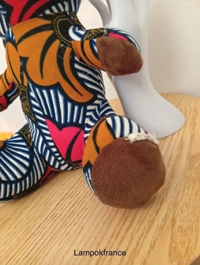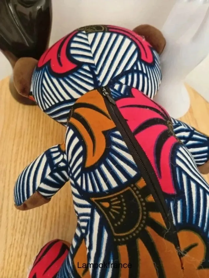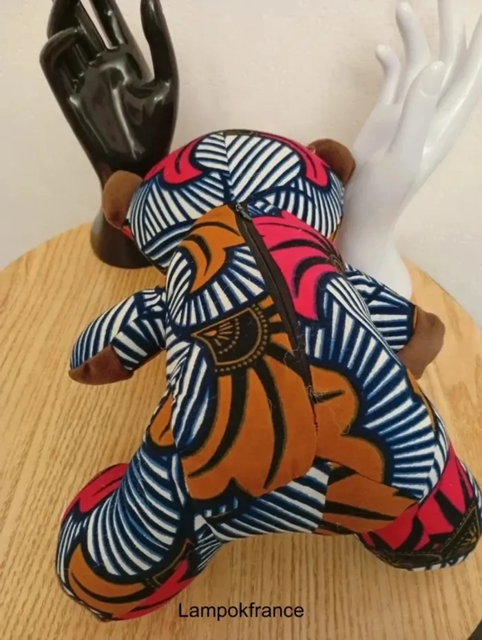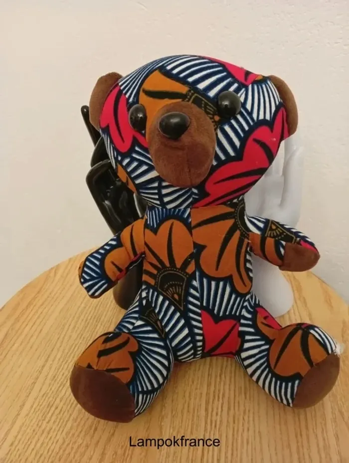 Doudou mosaïque ours en patchwork original en coton naturel africain vintage peluche teddy bear