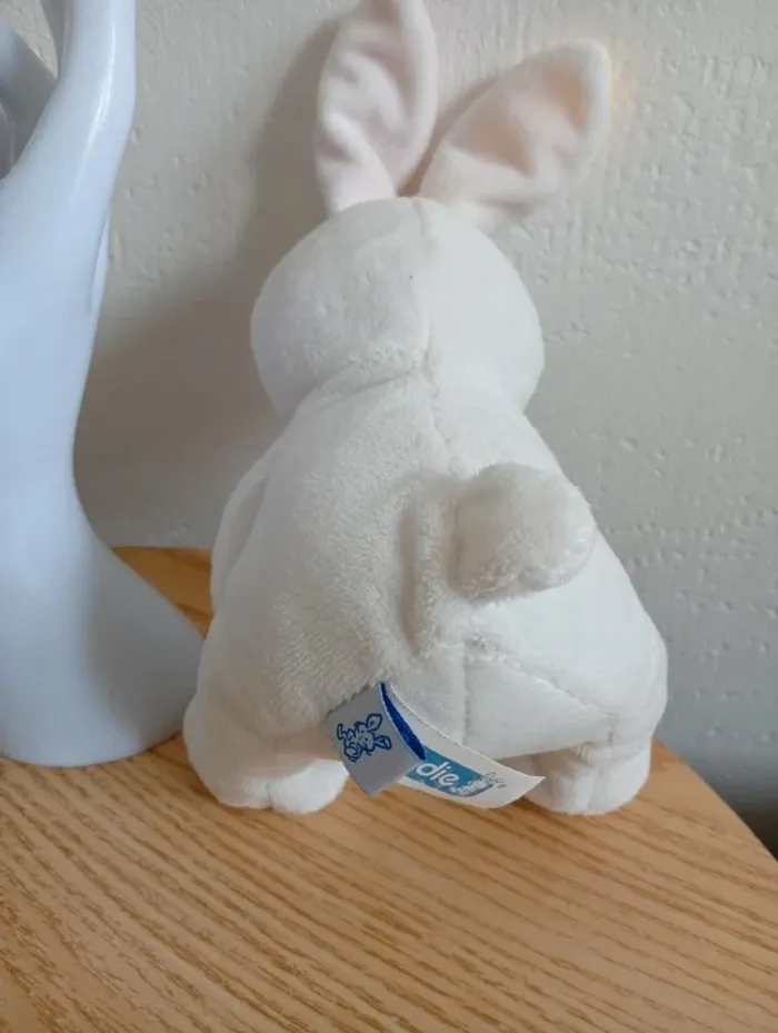 Dodie peluche lapin 25cm blanc oreilles jaune rose
